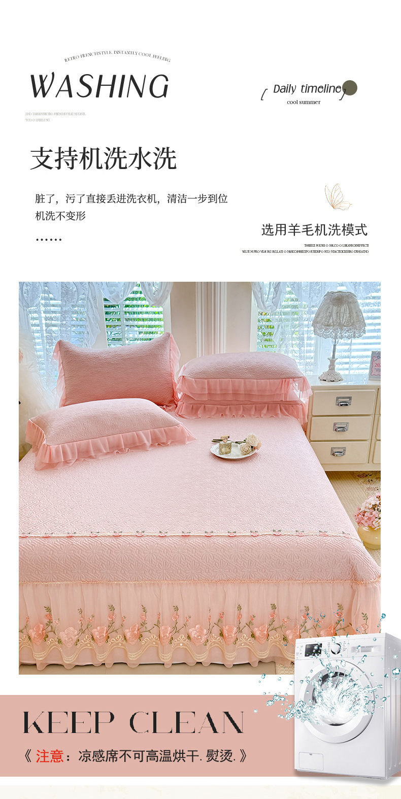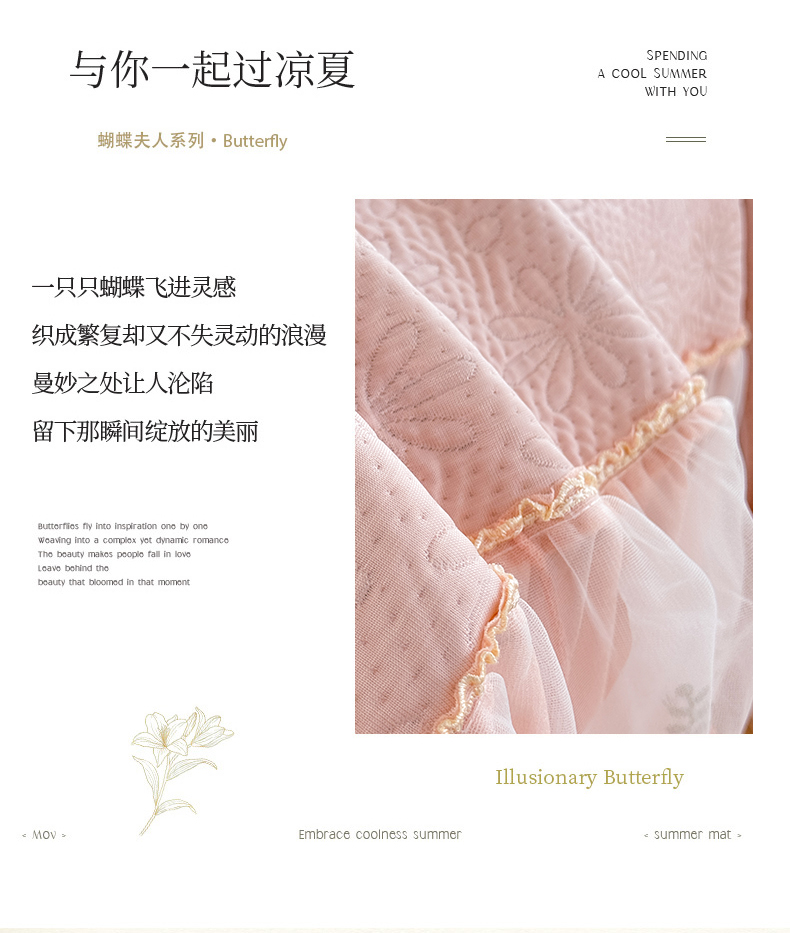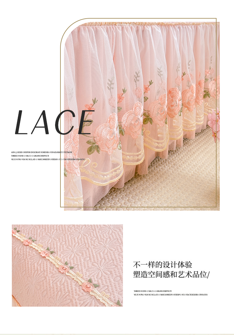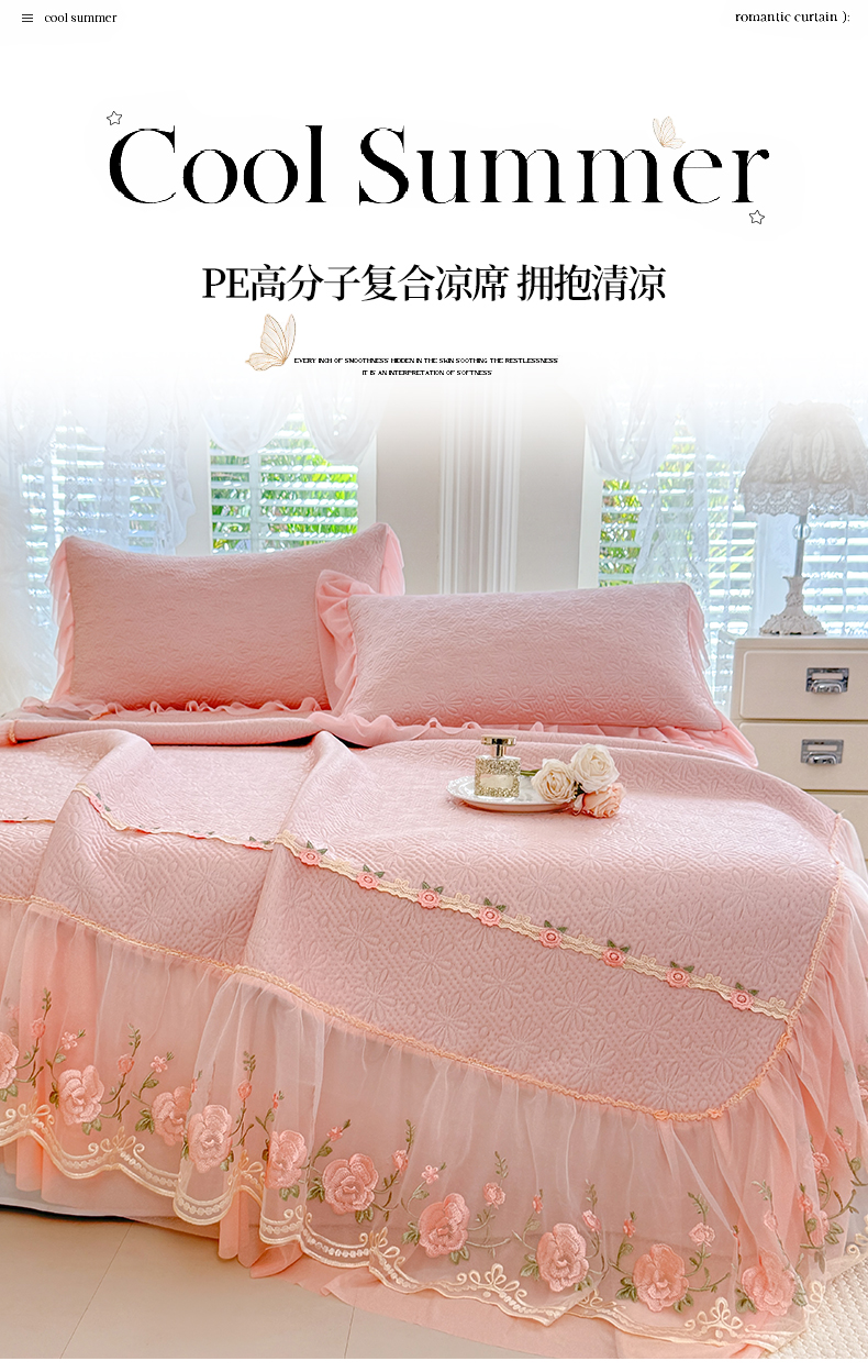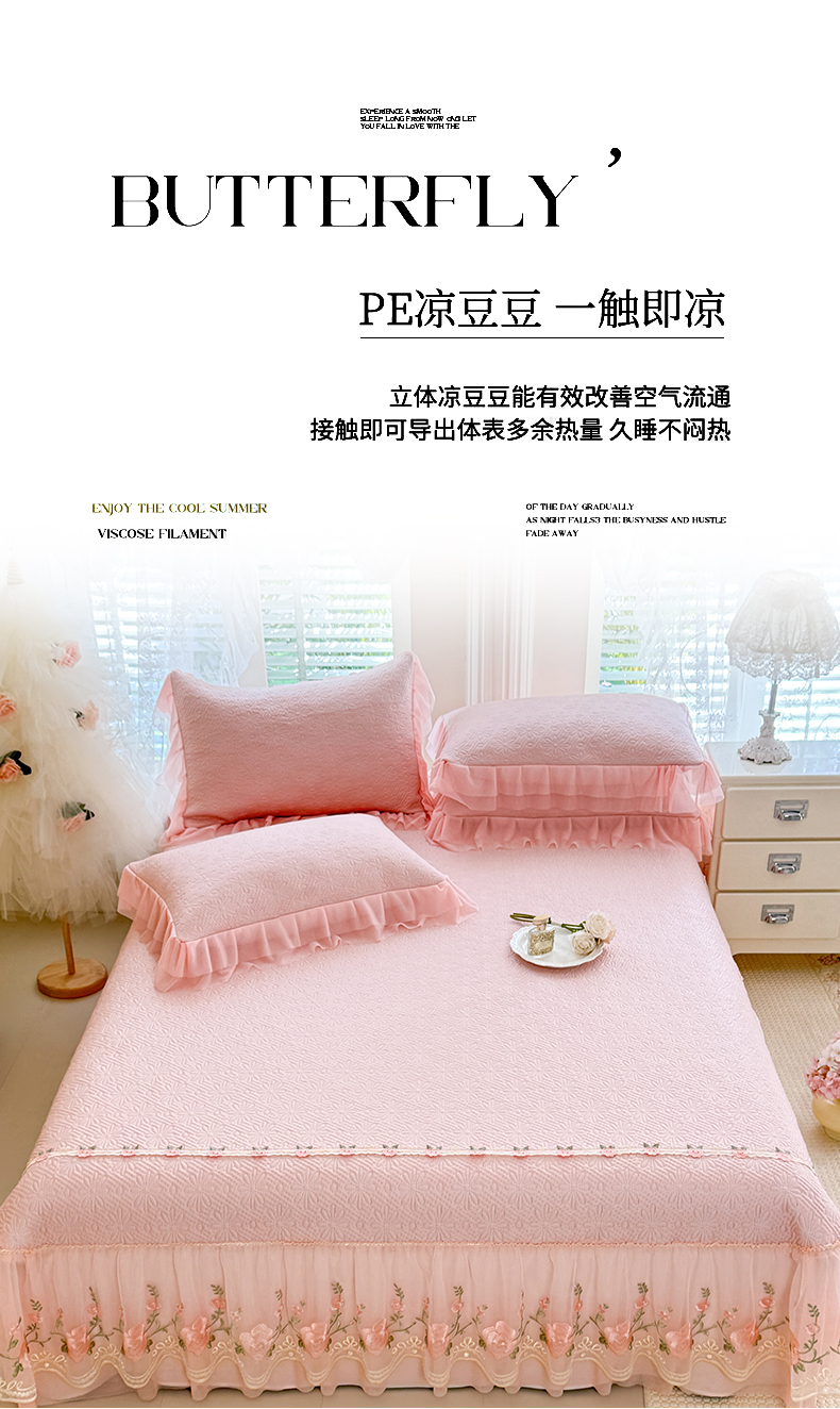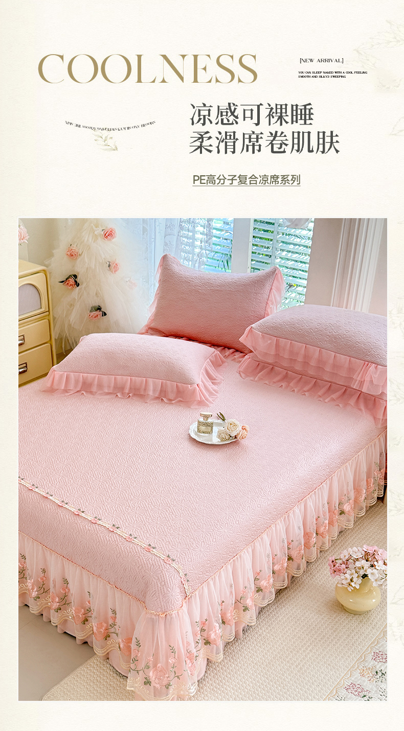 (总)苏米娜家纺SUMINA 2026春夏新款PE高分子双层蕾丝刺绣花边床裙款凉席三件套-伊莉莎系列