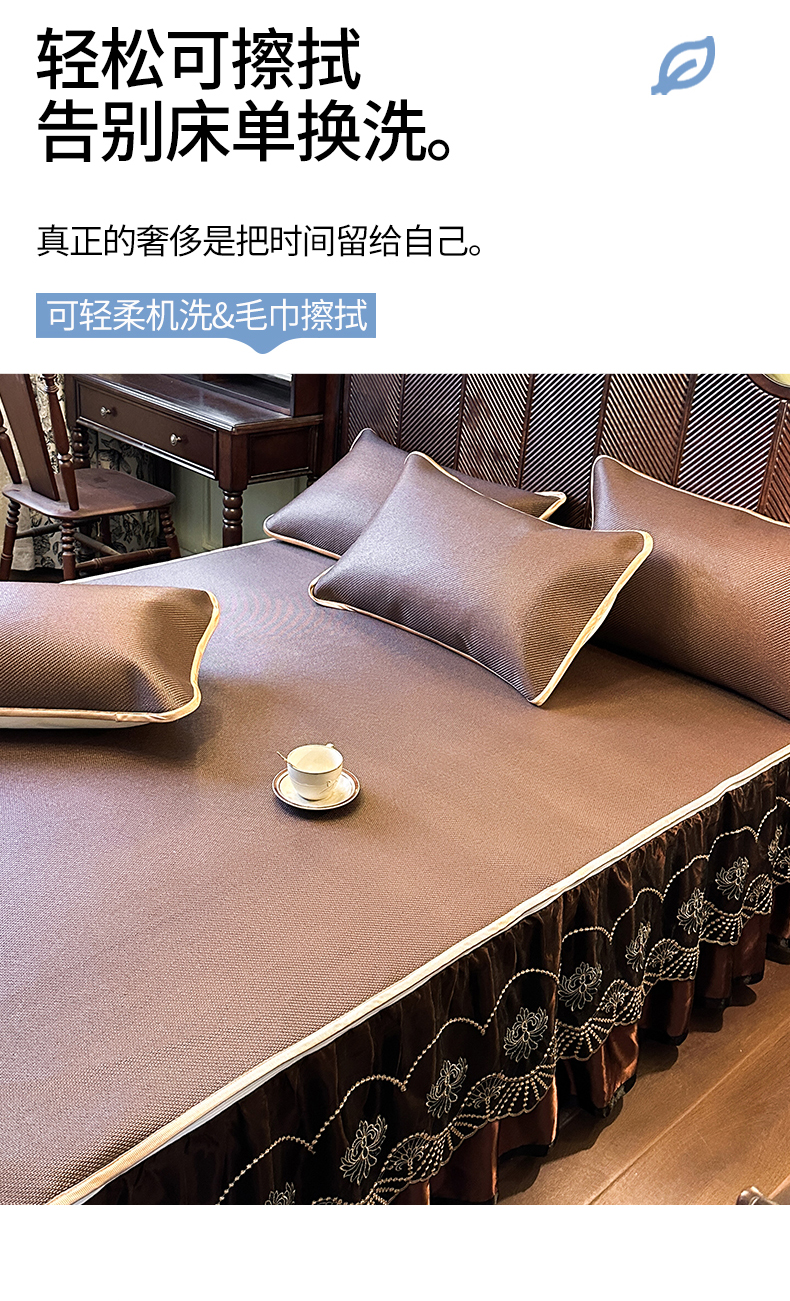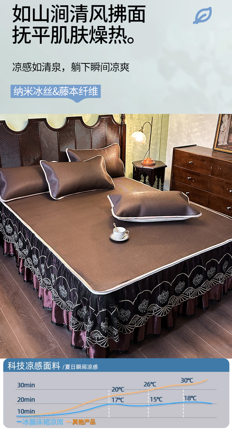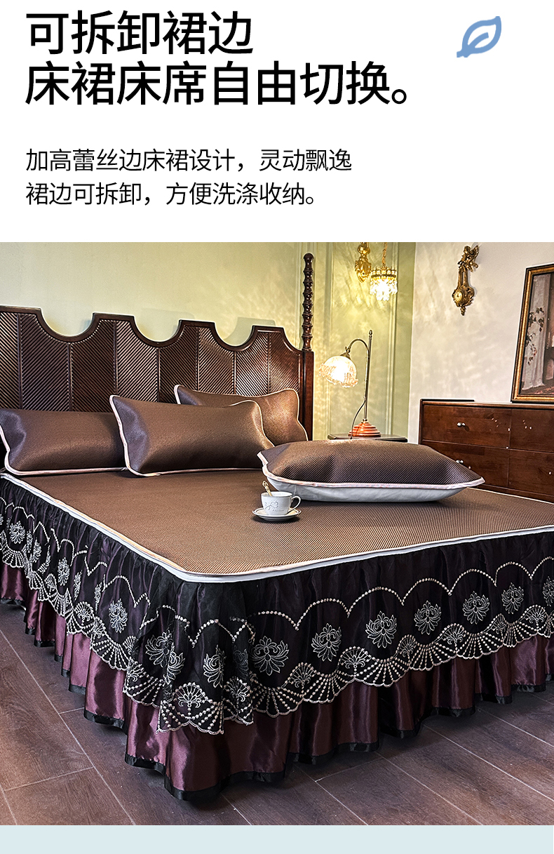 商品名称:网红馆(ck家纺) 2026新款可脱卸床裙款冰藤席凉席席子-雅韵 雅韵-深咖