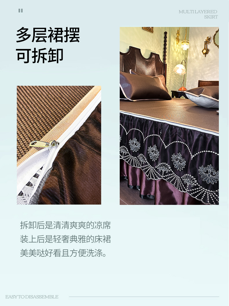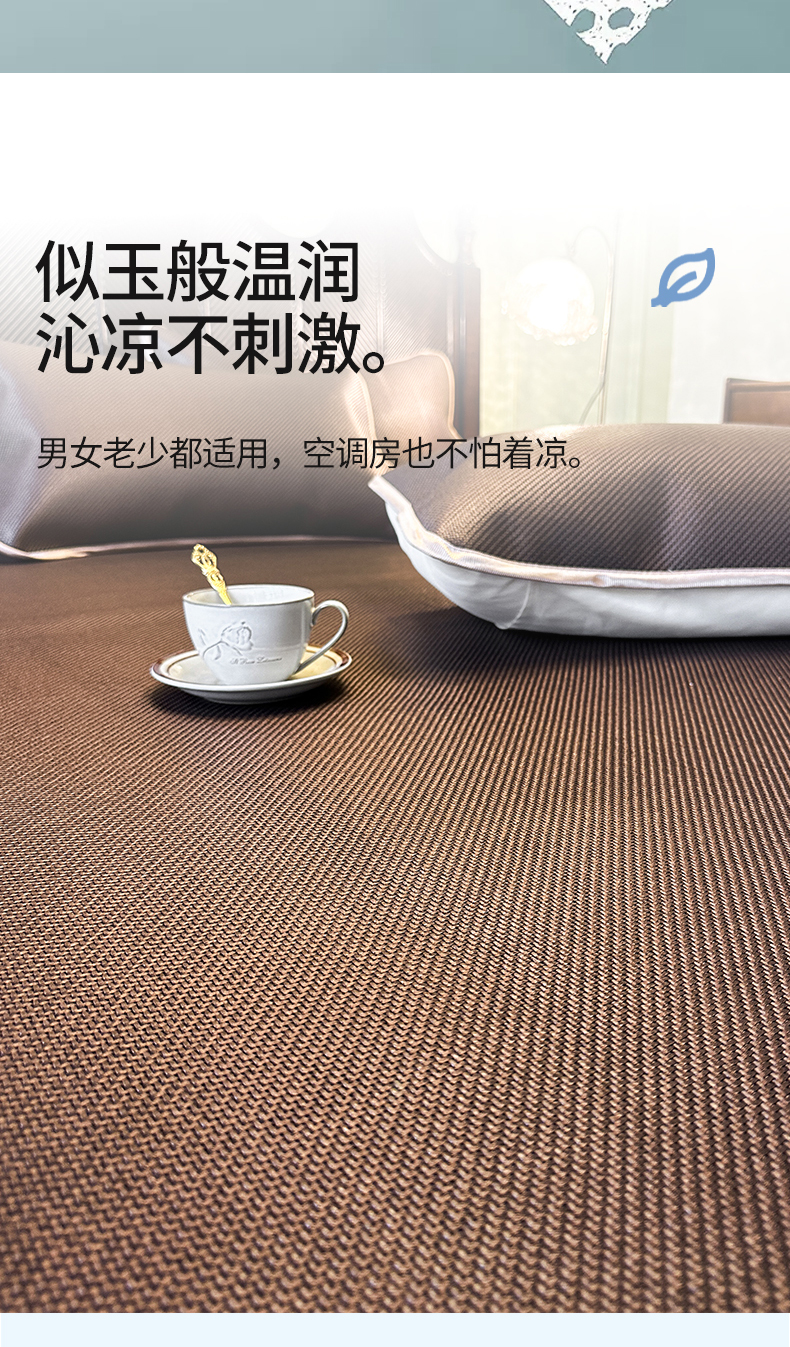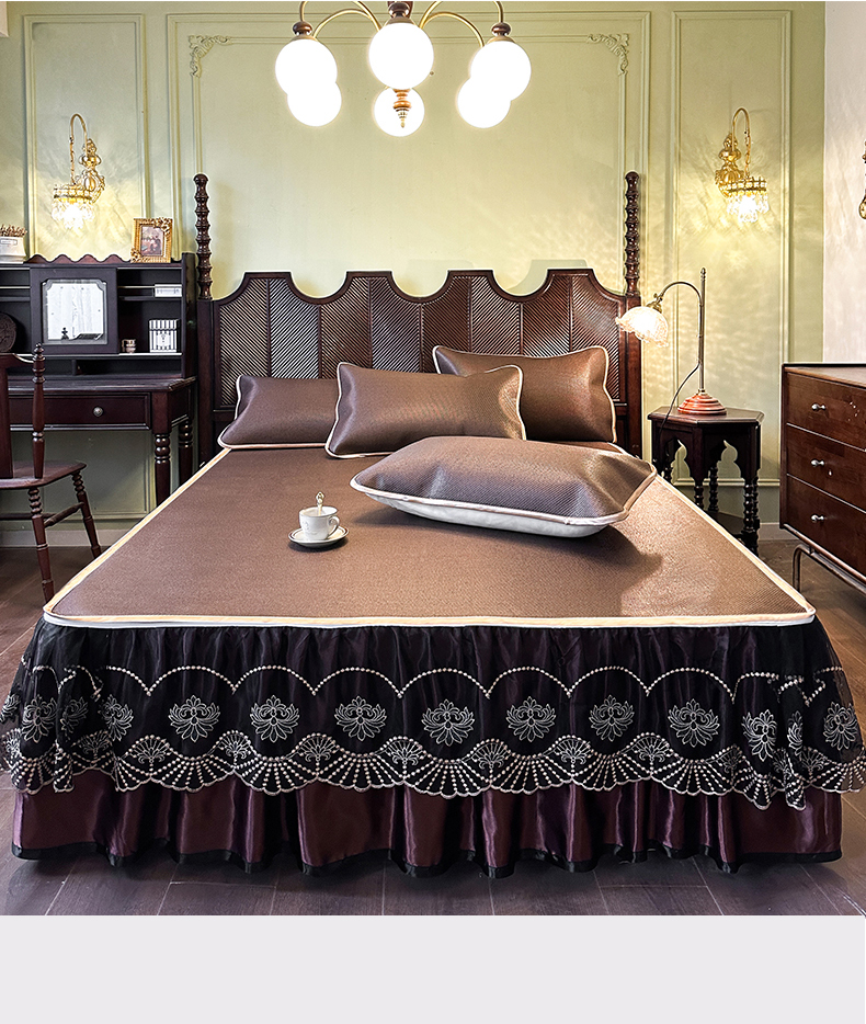 网红馆(ck家纺) 2026新款可脱卸床裙款冰藤席凉席席子-雅韵 雅韵-深咖