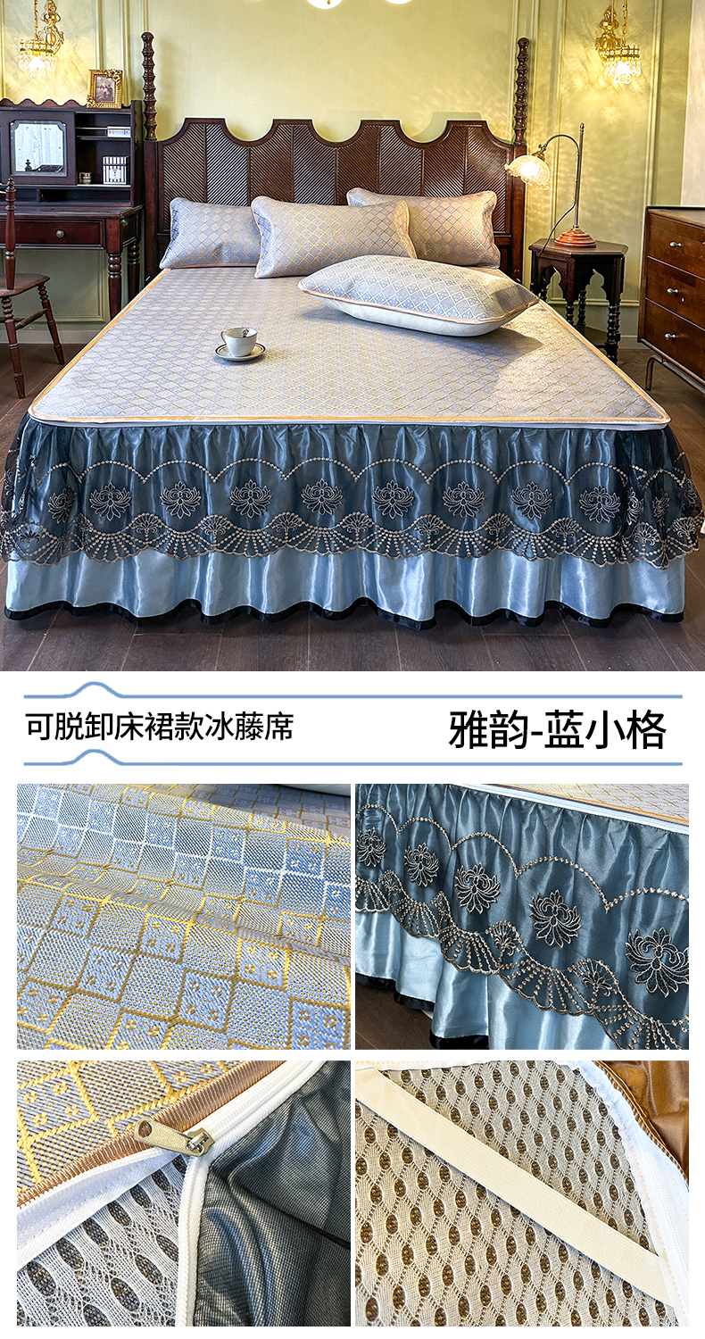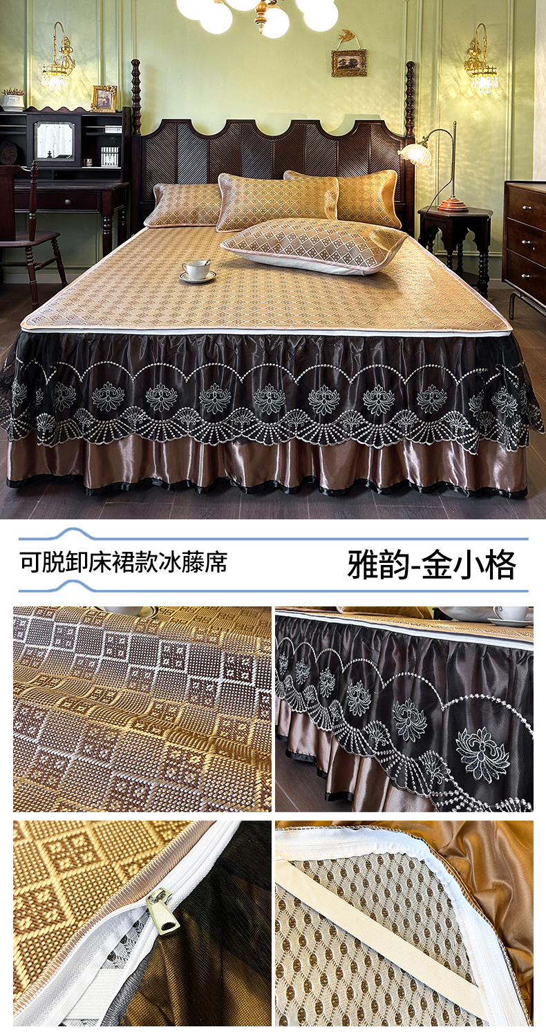 (总)网红馆(ck家纺) 2026新款可脱卸床裙款冰藤席凉席席子-雅韵,雅韵-金色,雅韵-金小格,雅韵-蓝小格,雅韵-绿小格,雅韵-深咖,雅韵-棕色