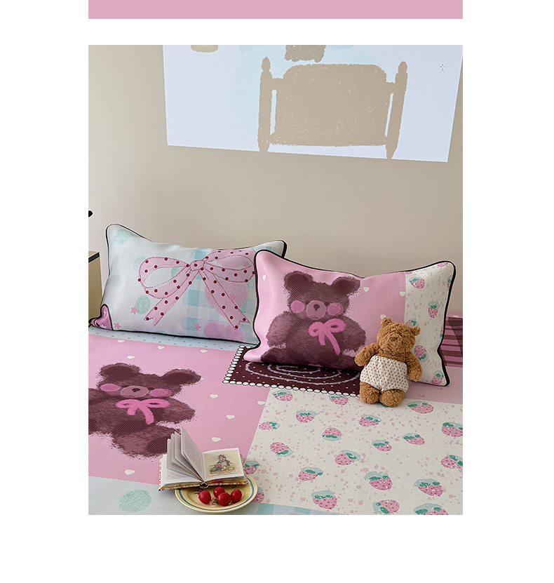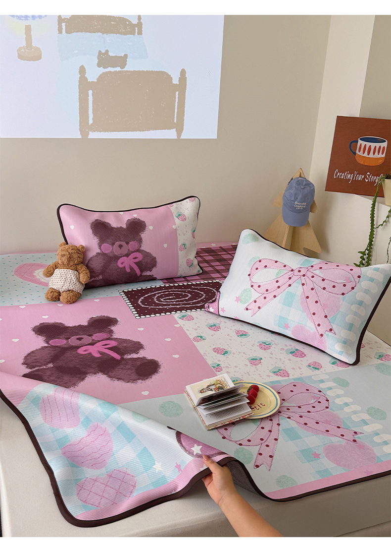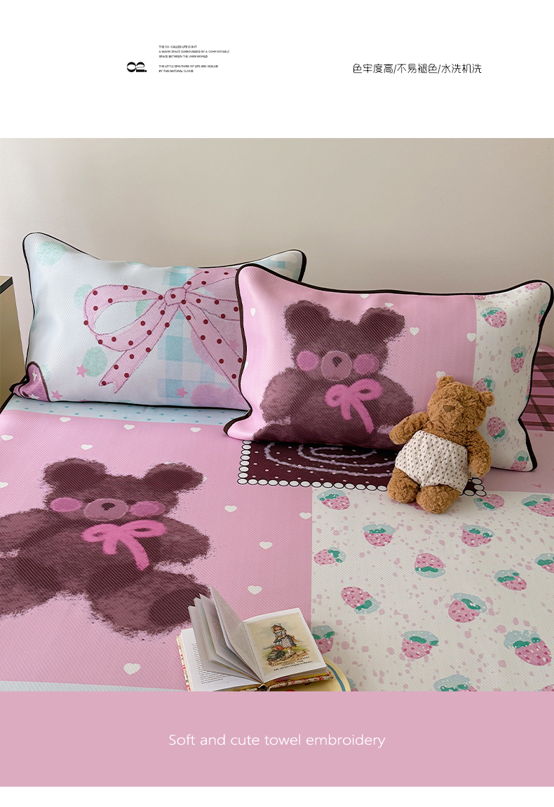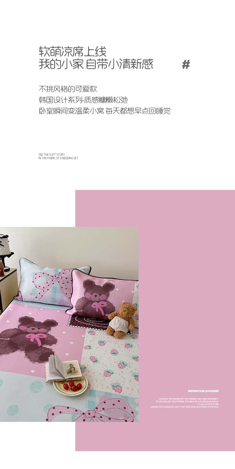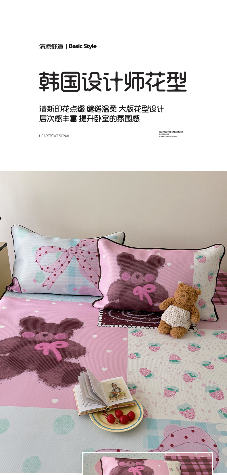 山茶家居-原创设计(原山茶家纺) 2026新款韩国设计师合作款斜纹冰丝席凉席 韩国设计系列--草莓与熊