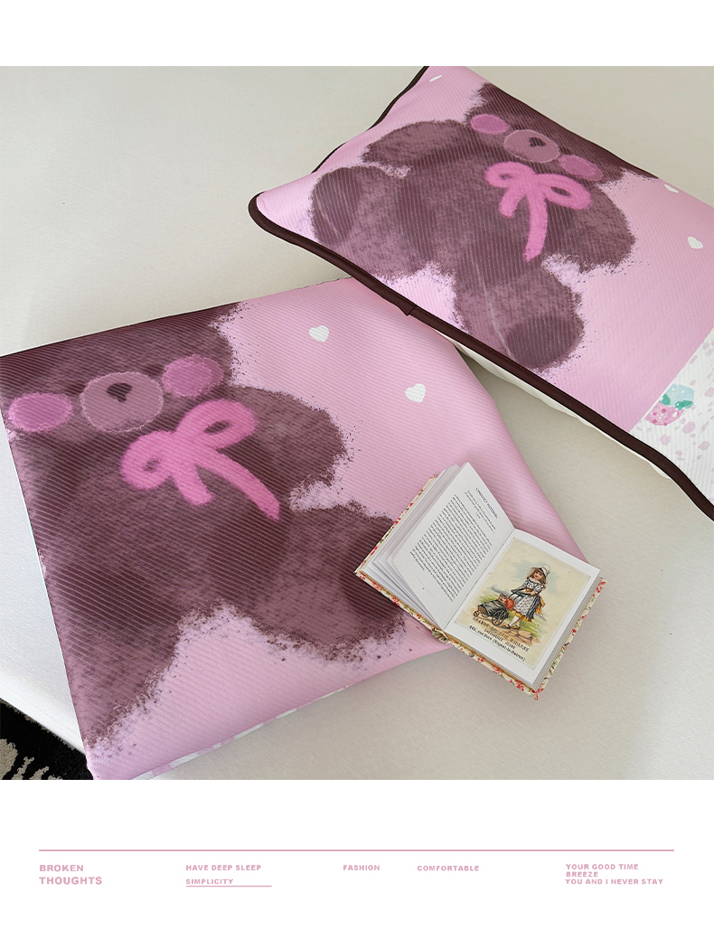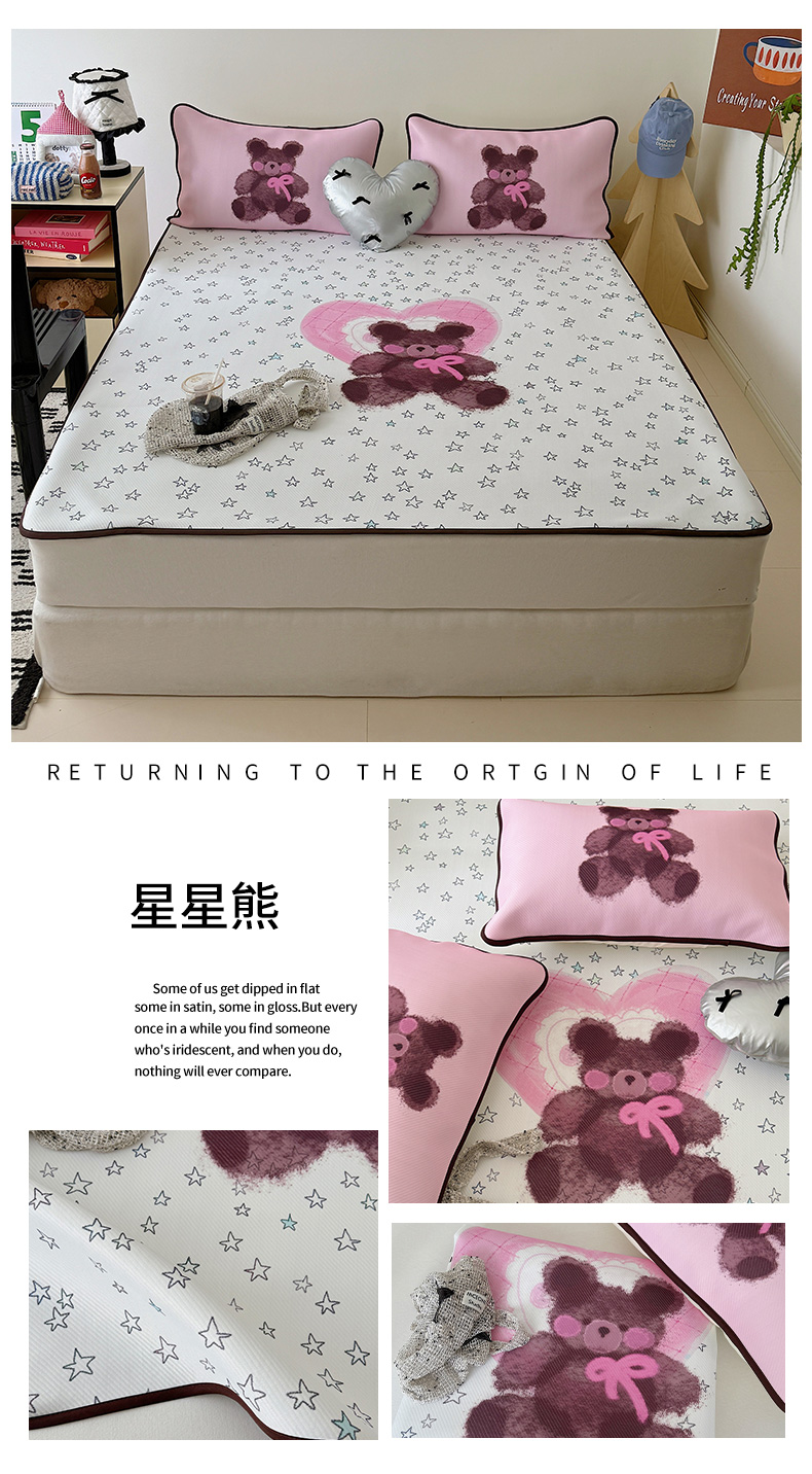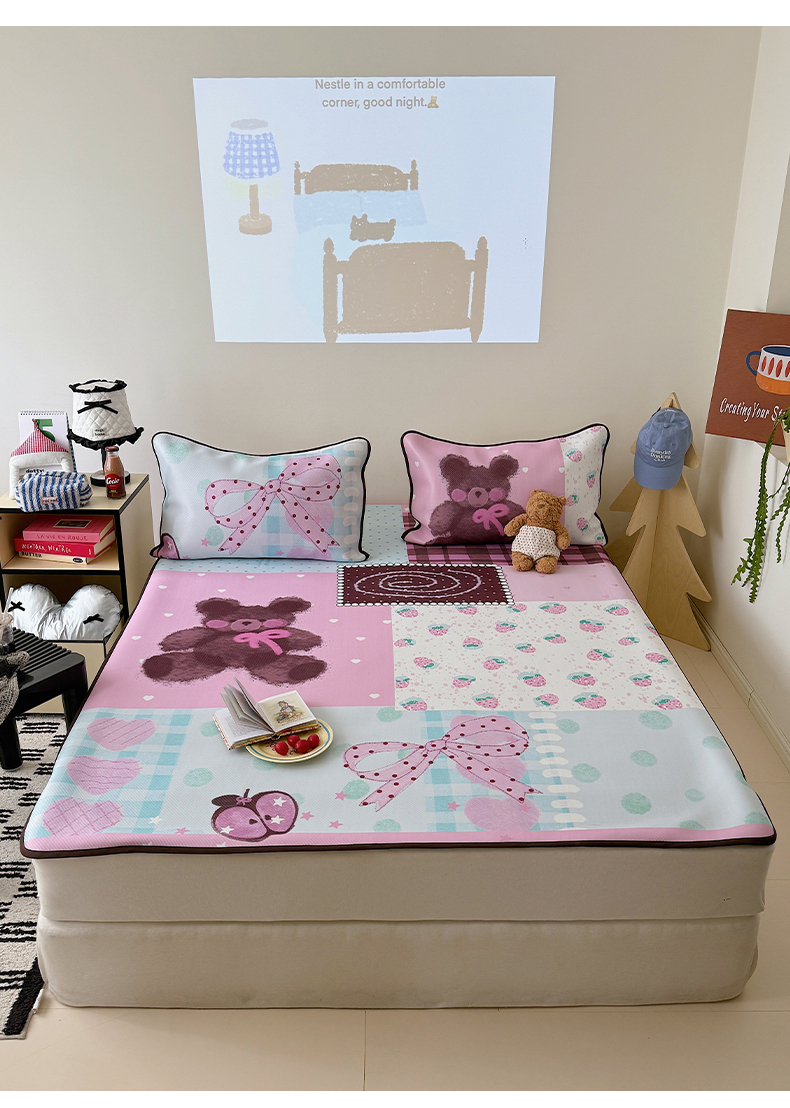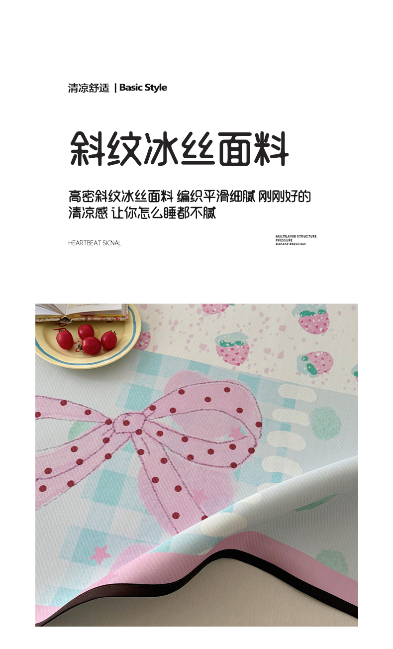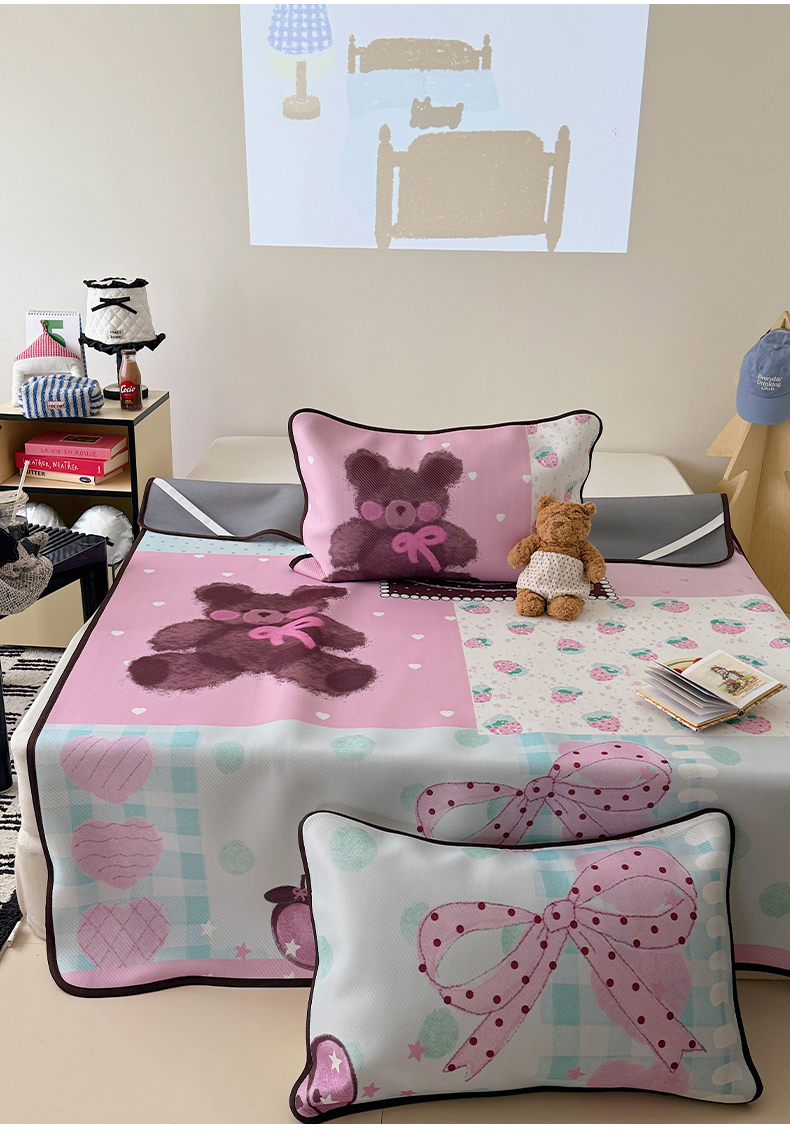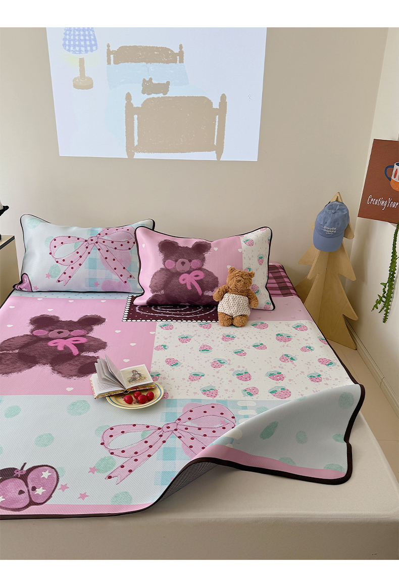 山茶家居-原创设计(原山茶家纺) 2026新款韩国设计师合作款斜纹冰丝席凉席 韩国设计系列--草莓与熊
