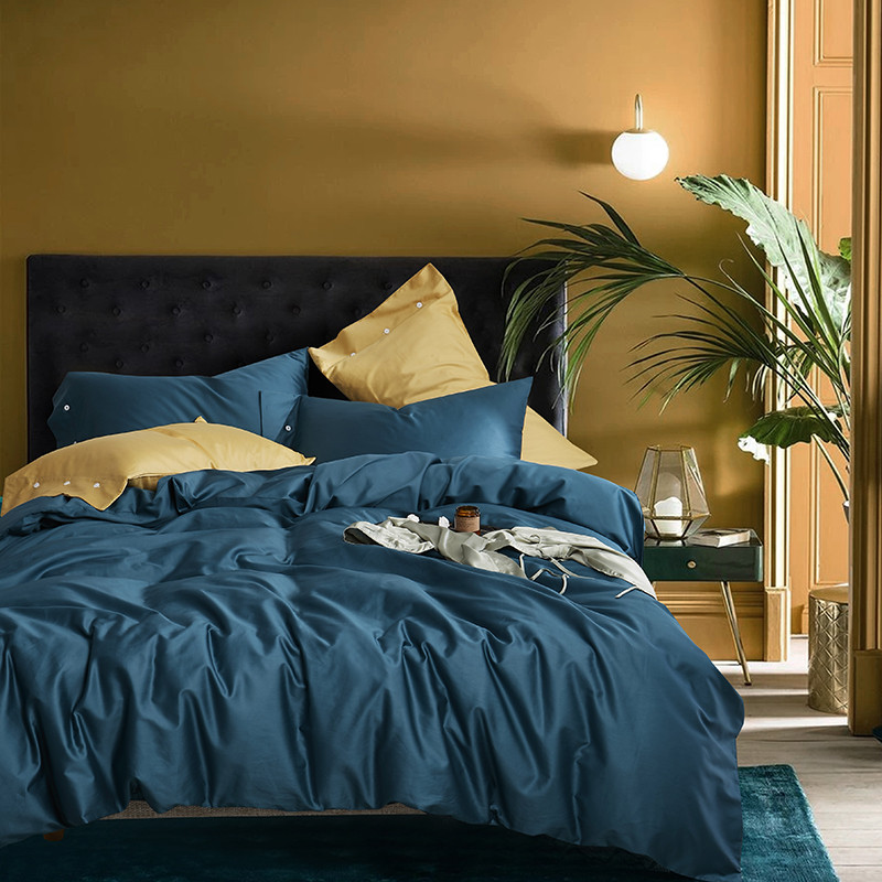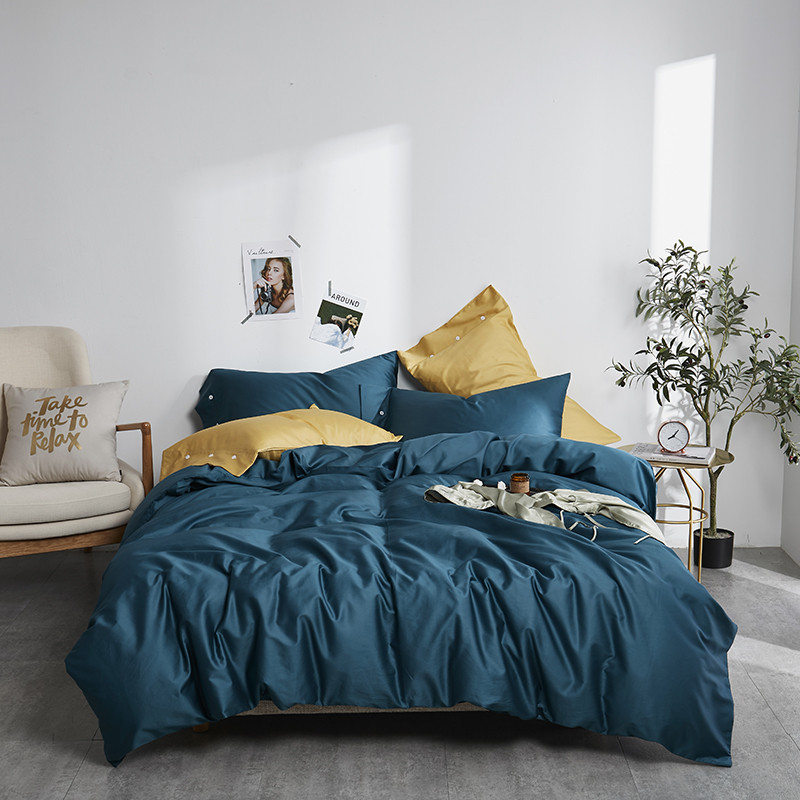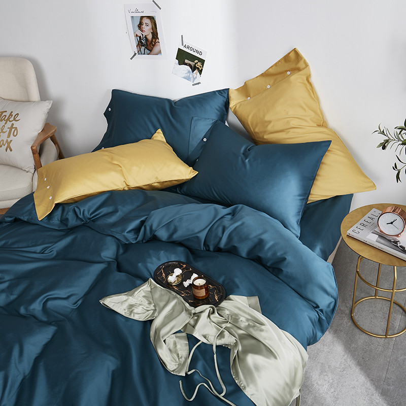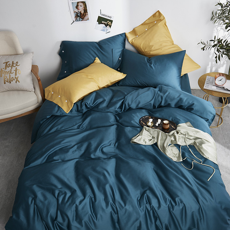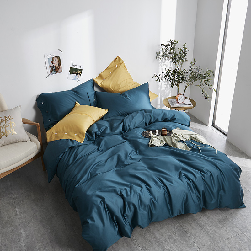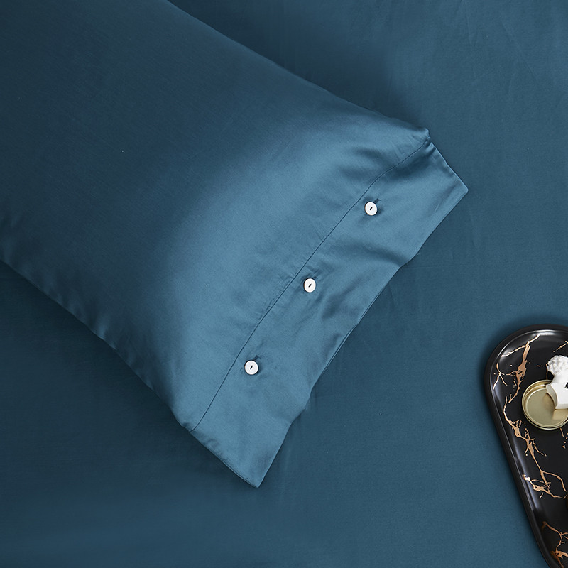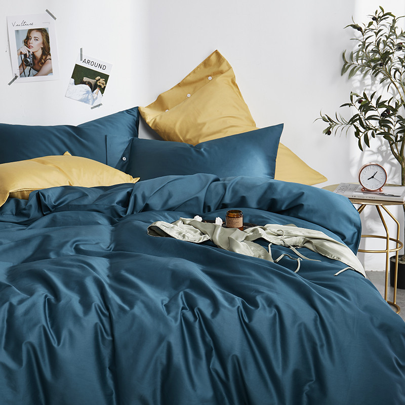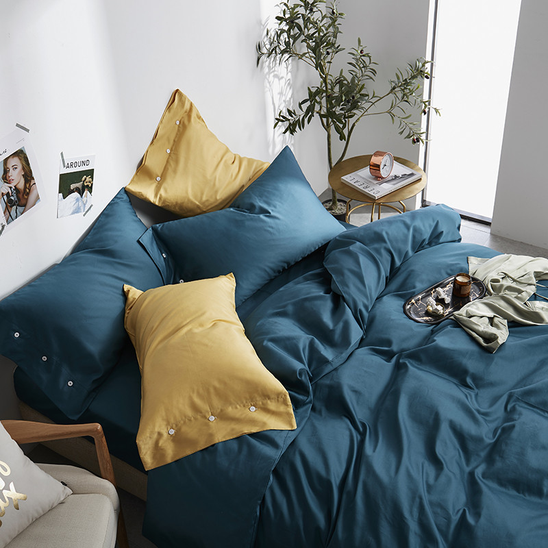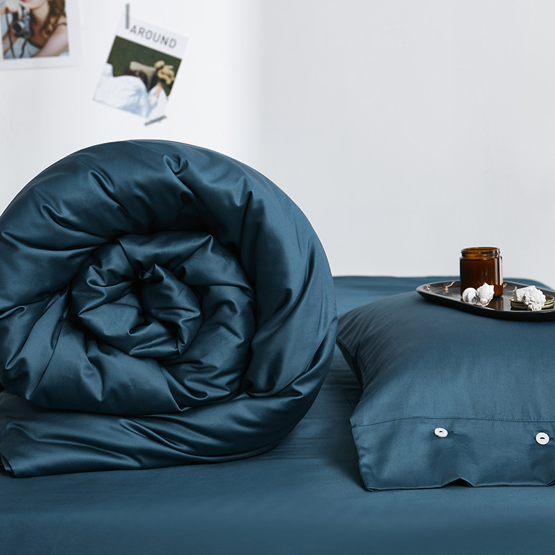 优然居家纺 60支长绒棉纯色四件套静怡蓝