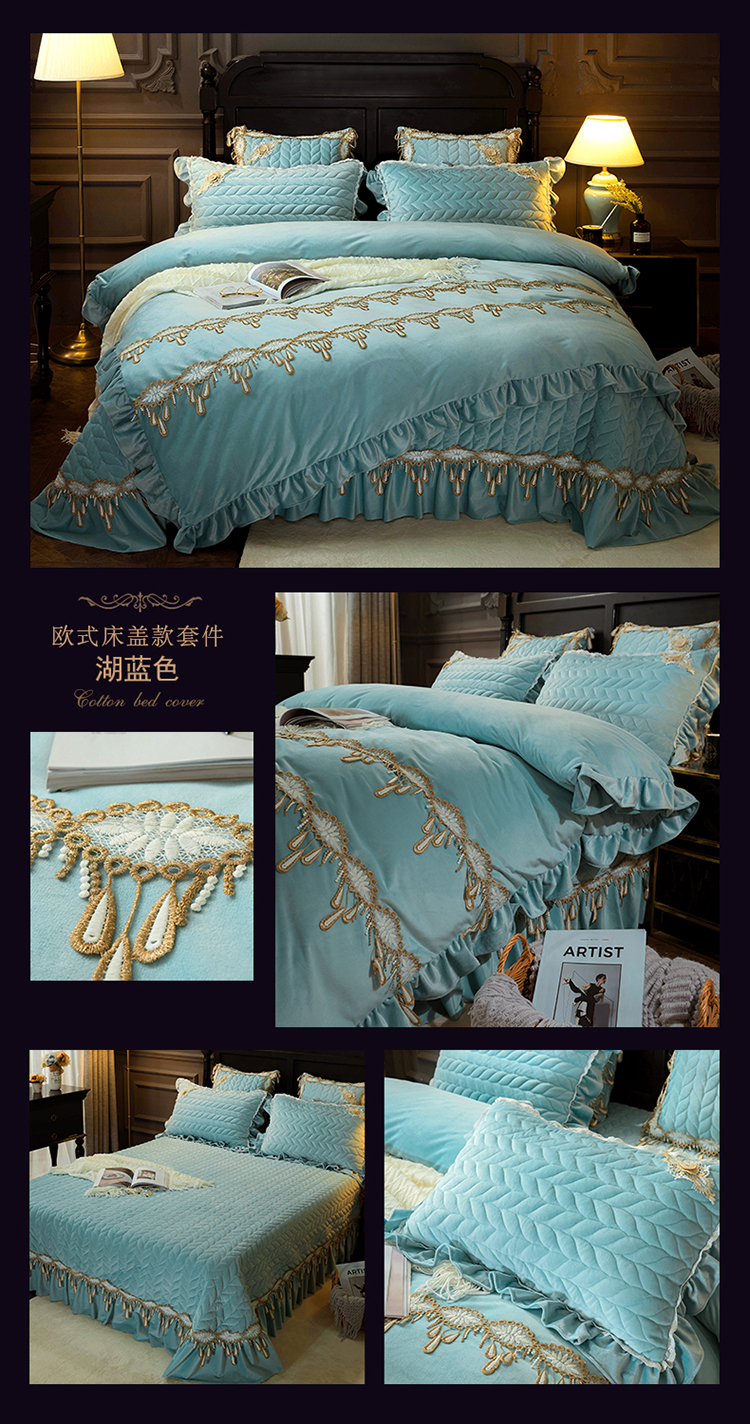 商品名称:菊上家纺 2019法式浪漫贵妃绒系列单品床盖 湖蓝色
