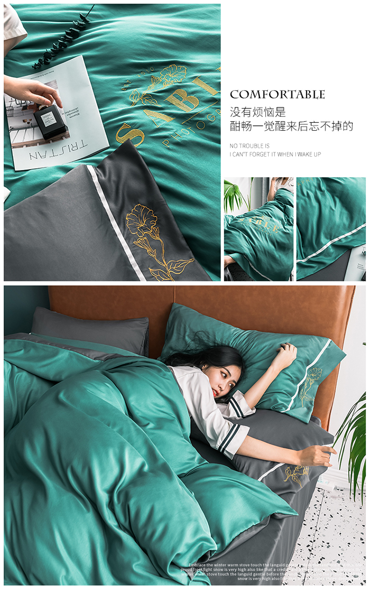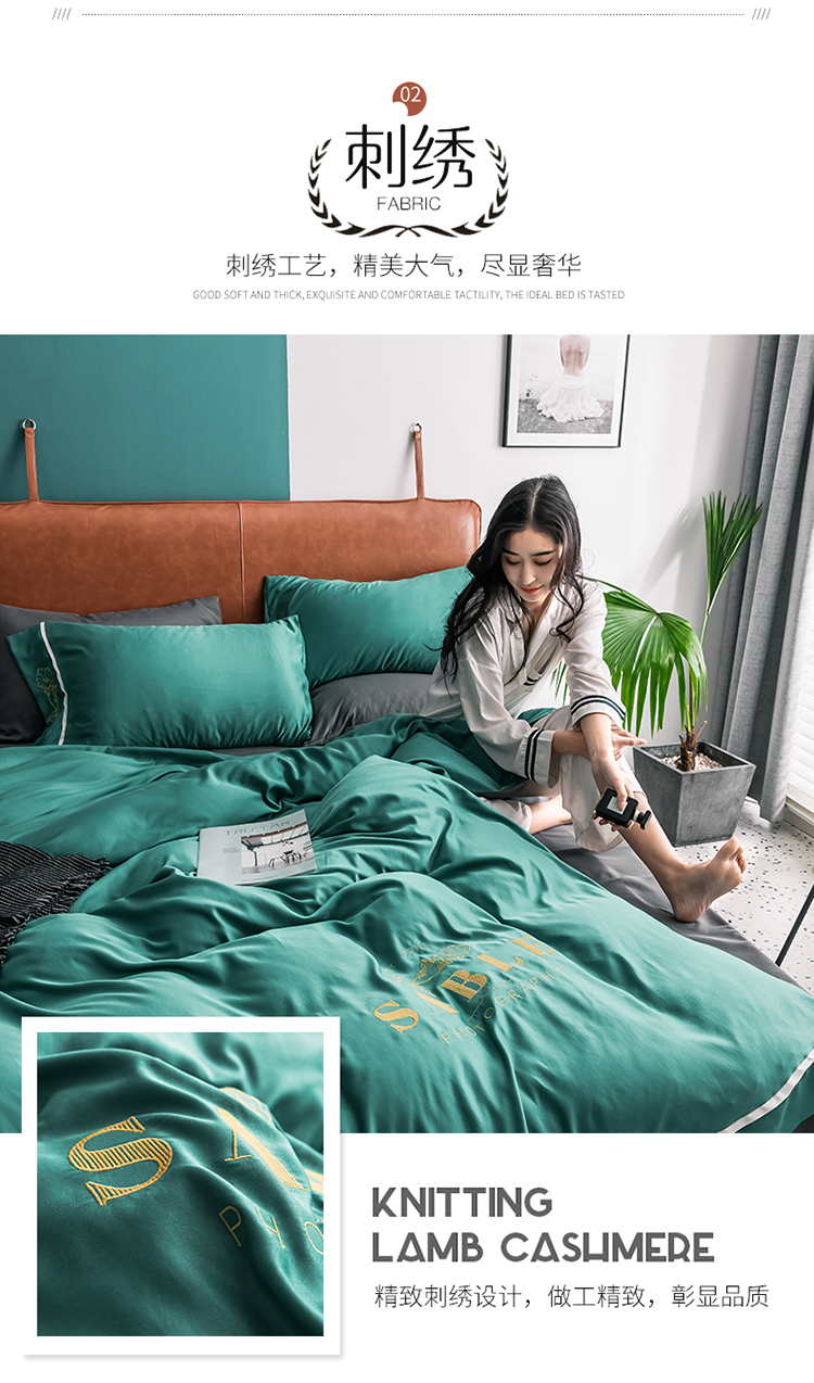 慕梵 2019新款轻奢天丝绸四件套 塞布尔---绿