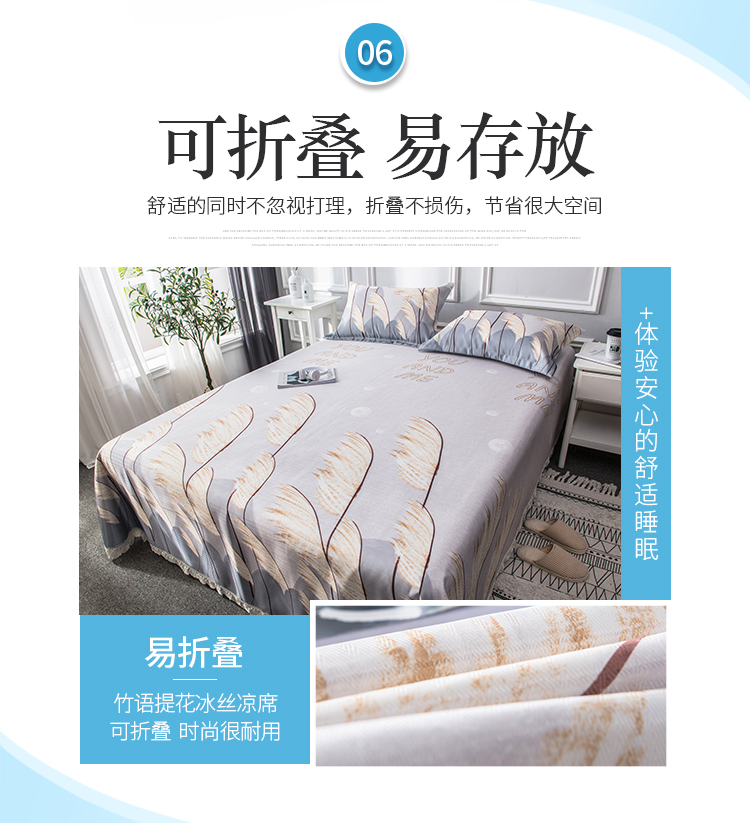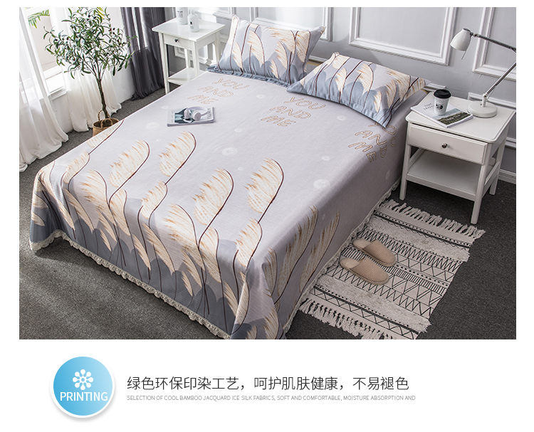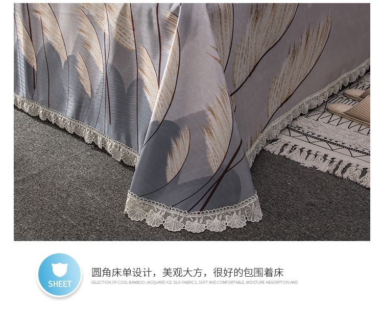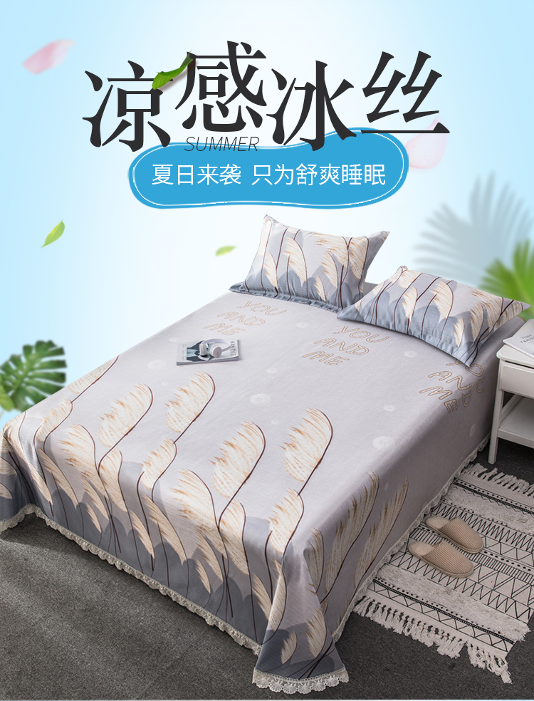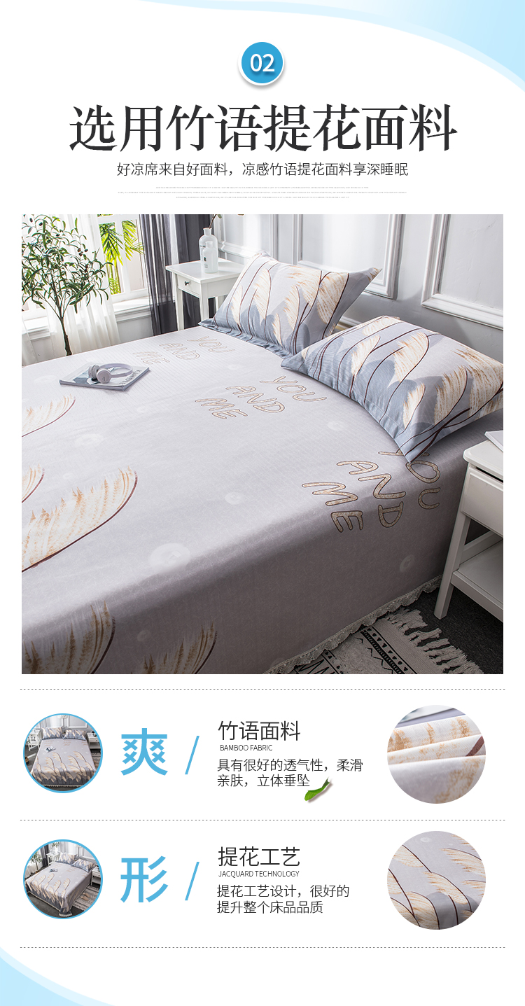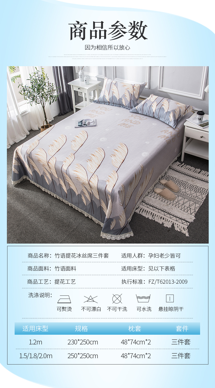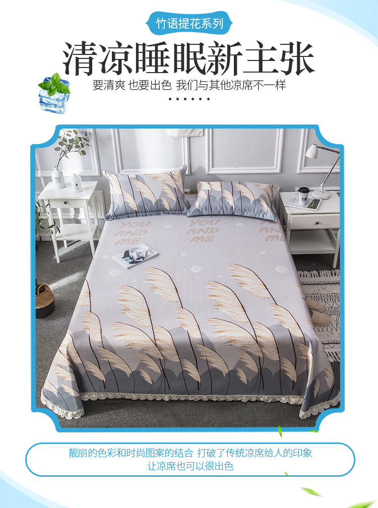 商品名称:懒猫 2020新款竹语提花花边床单款冰丝席 芦苇花