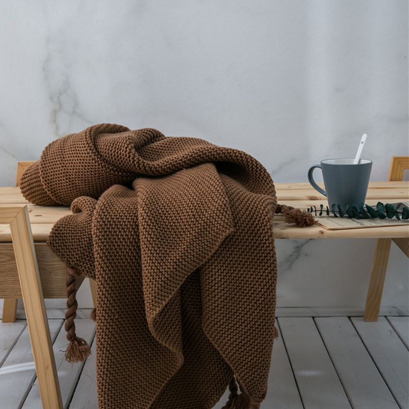 暖绵绵家纺 海的女儿 针织毯子线毯 咖色