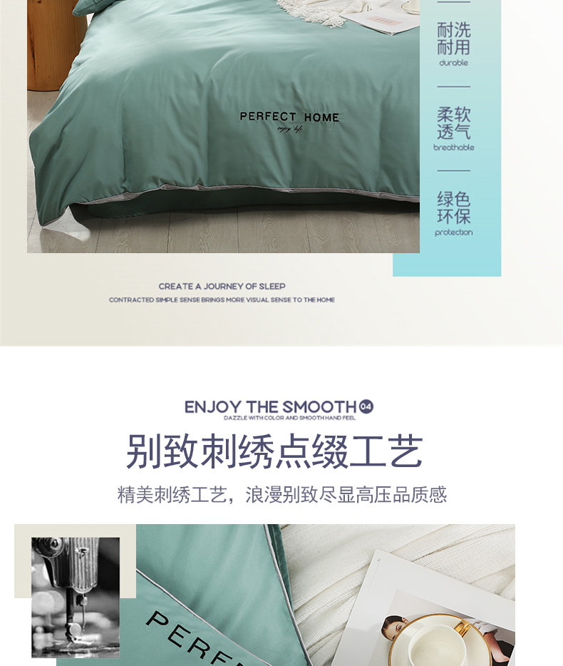 米奈家居 2020新品舒柔棉立体边四件套 绿