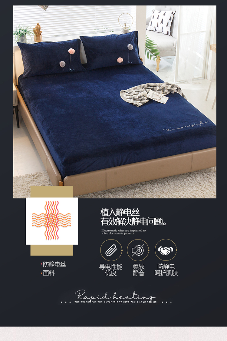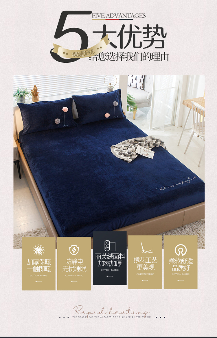 商品名称:鼎飞 2019新款丽芙绒单品终版床笠 优雅宝蓝