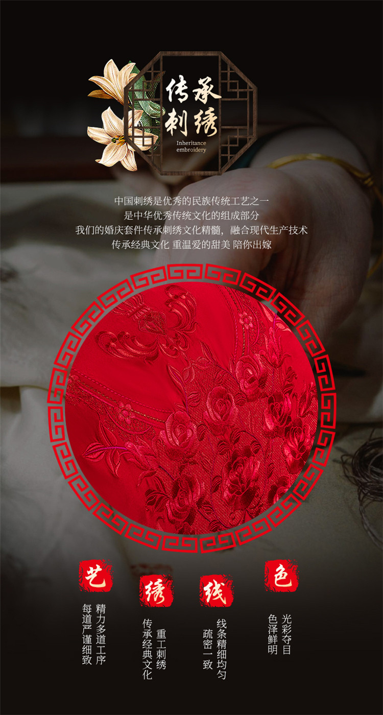 千禧 2024新款贡缎磨毛婚庆绣花多件套 盛世华庭(彩色绣),盛世华庭(彩色绣)