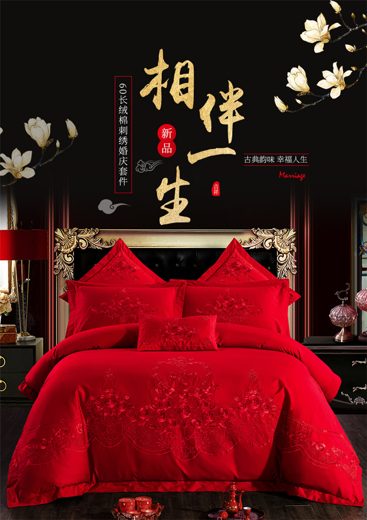 千禧家纺 2019新款长绒棉婚庆多件套 相伴一生