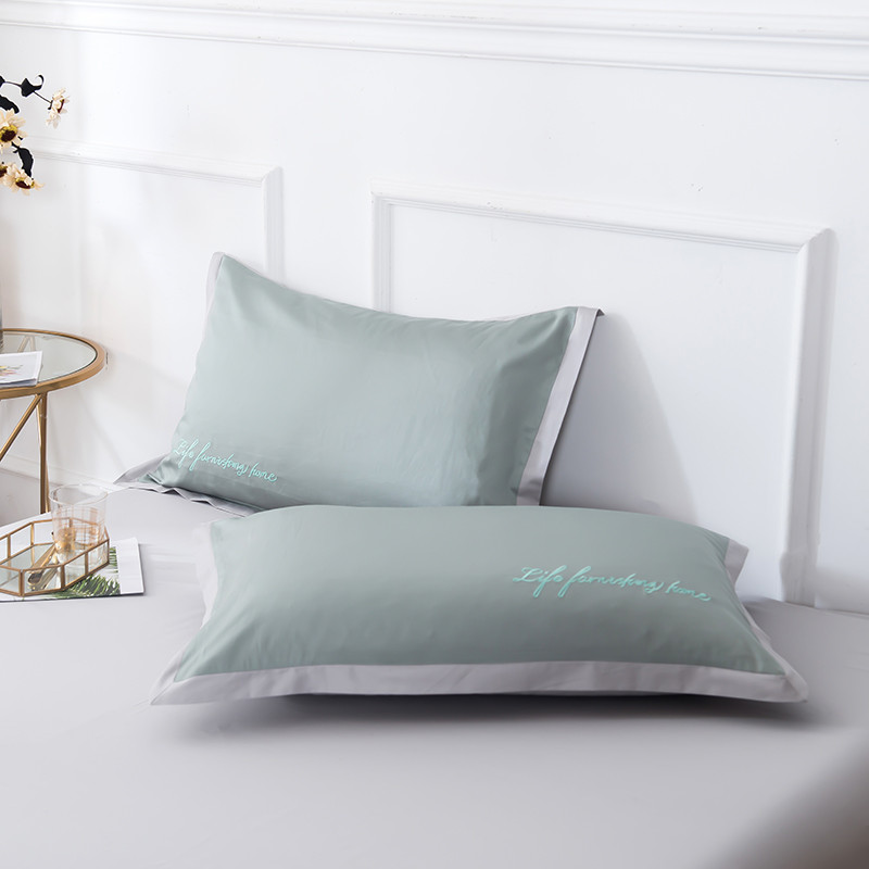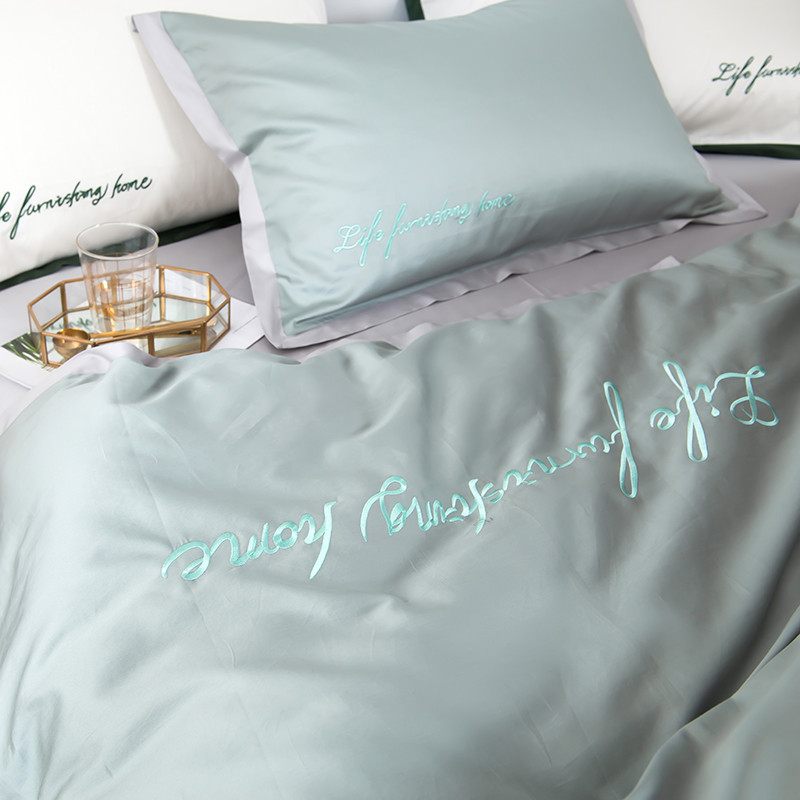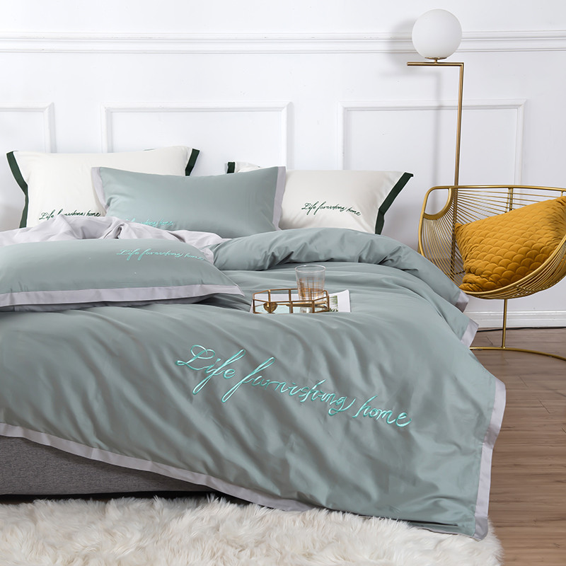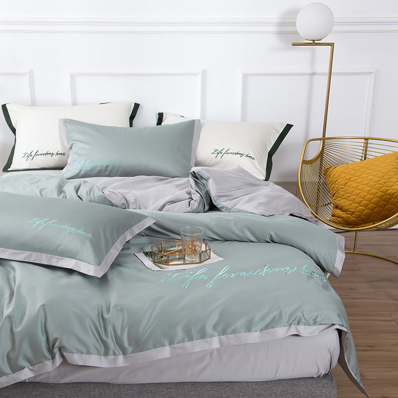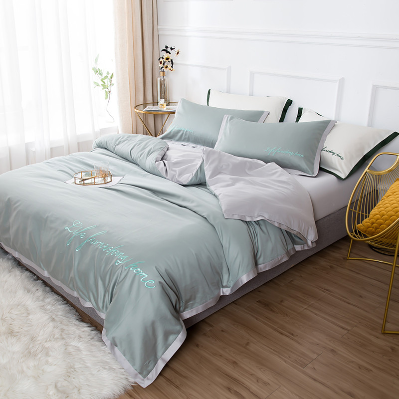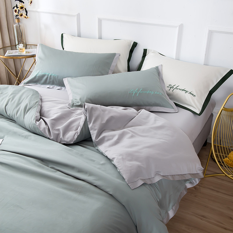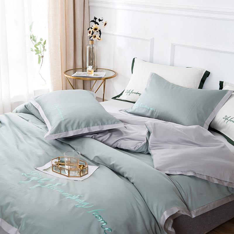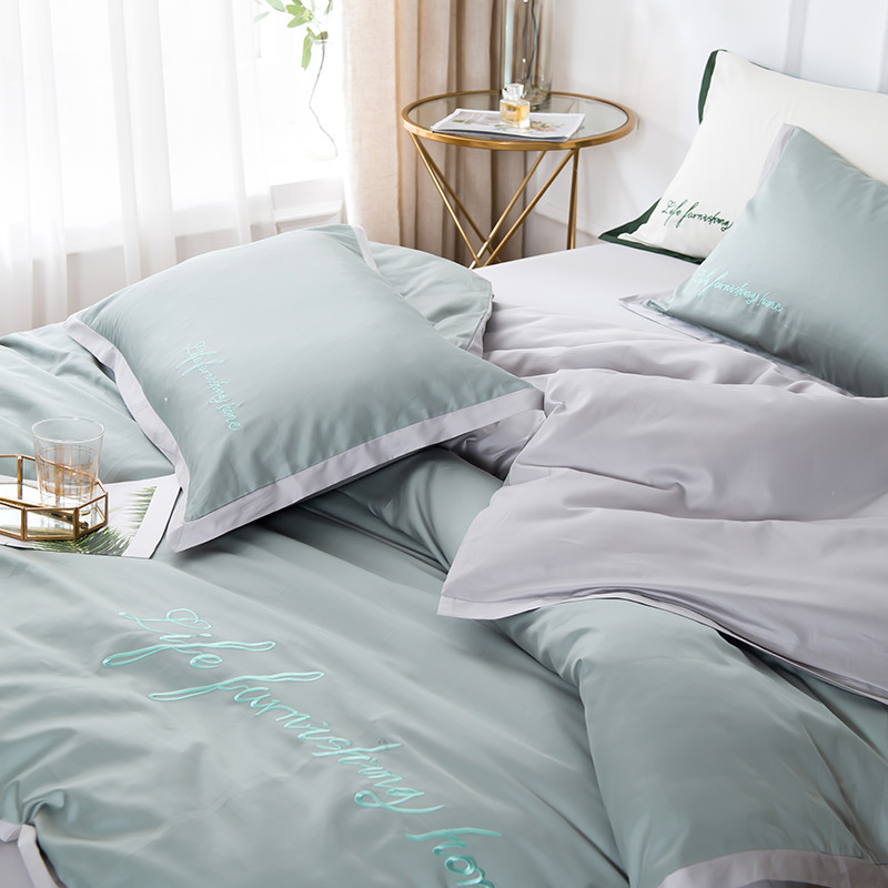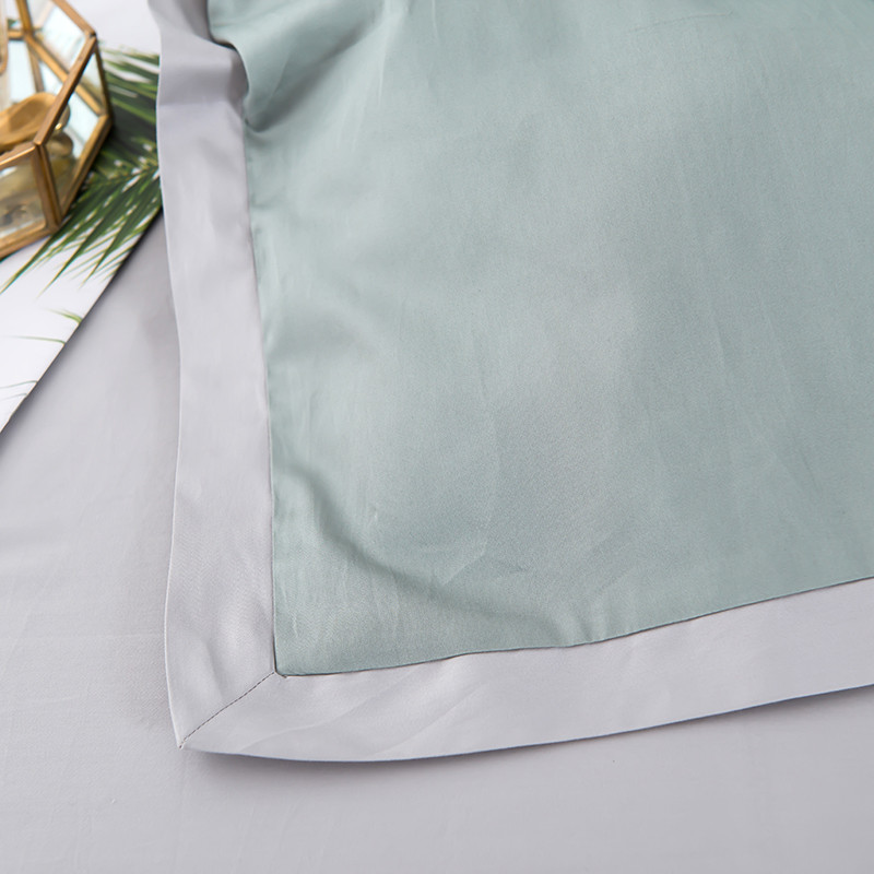 太古汇 60支贡缎长绒棉纯色双拼四件套棚拍图 薄荷绿