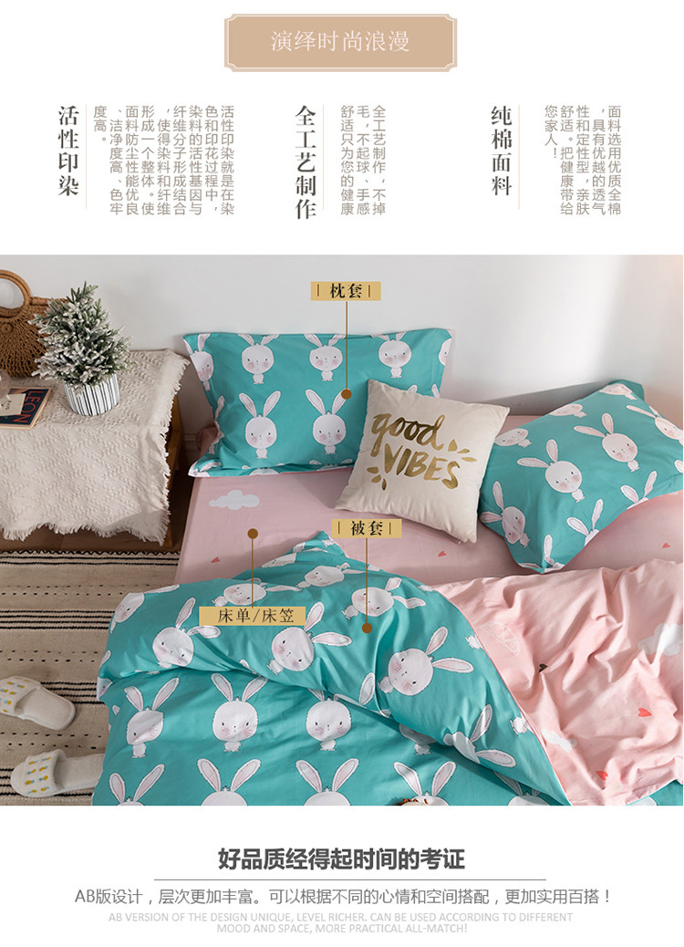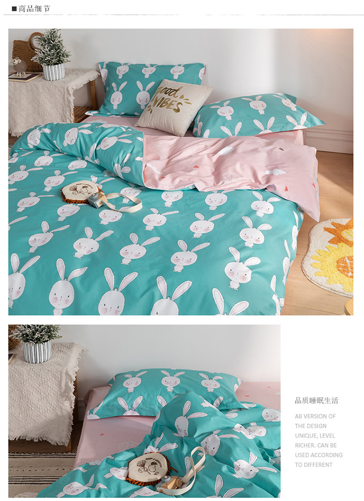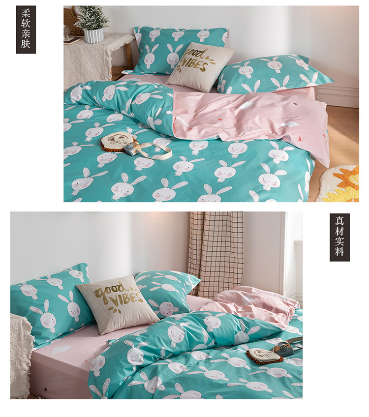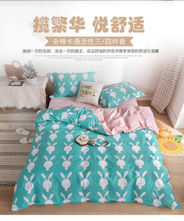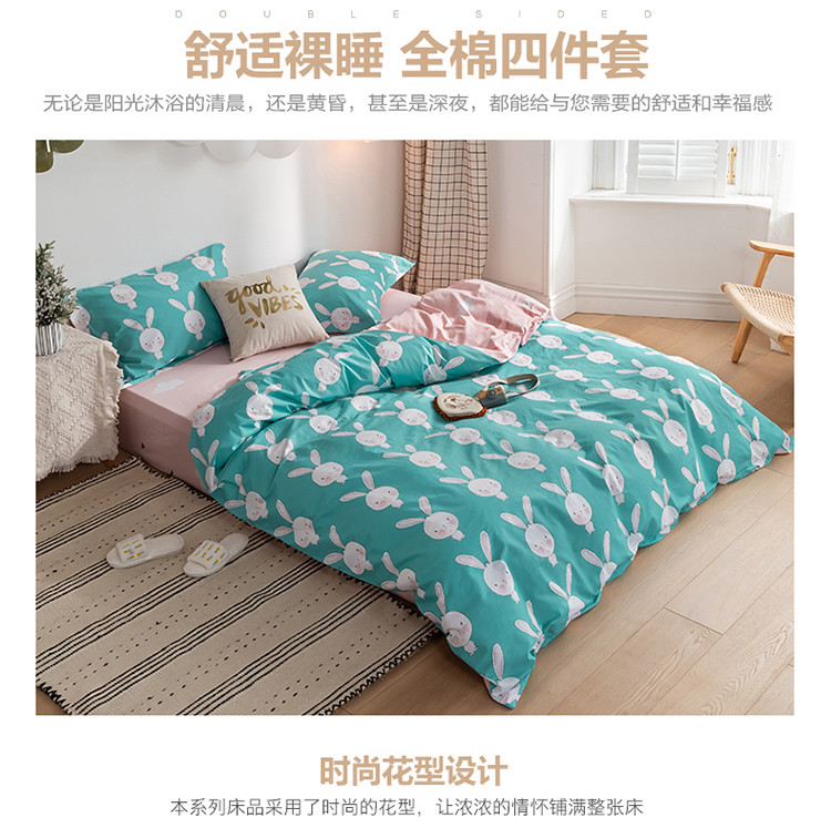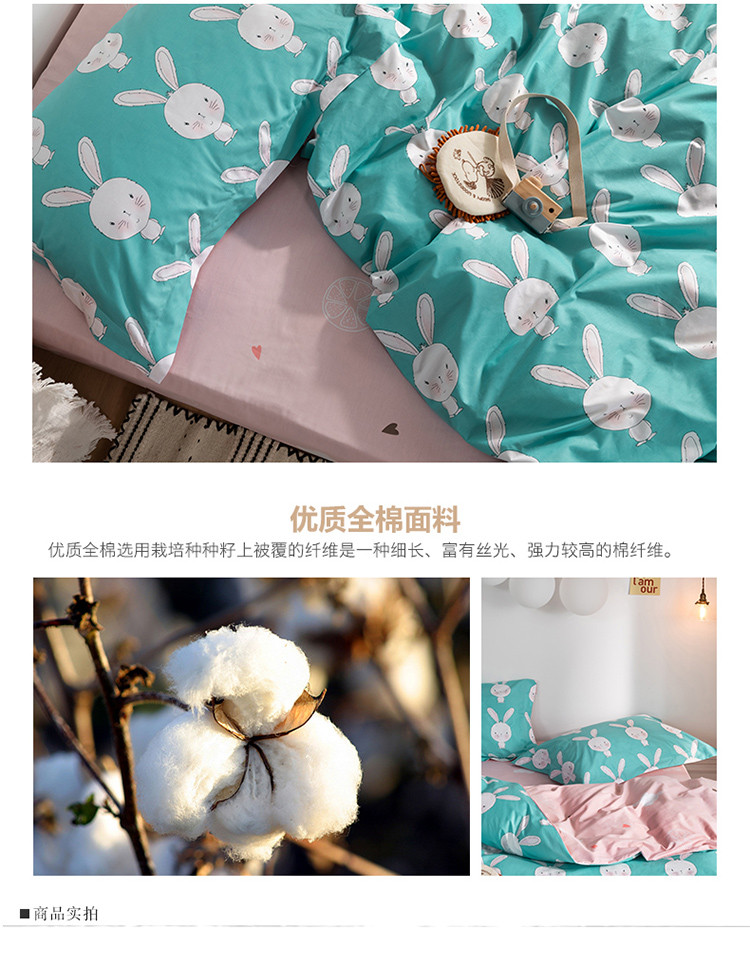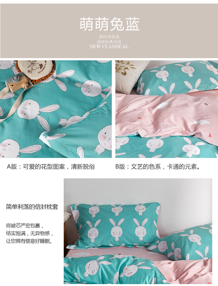 商品名称:窝米 2020春夏新品-萌系卡通风系列四件套 萌萌兔蓝