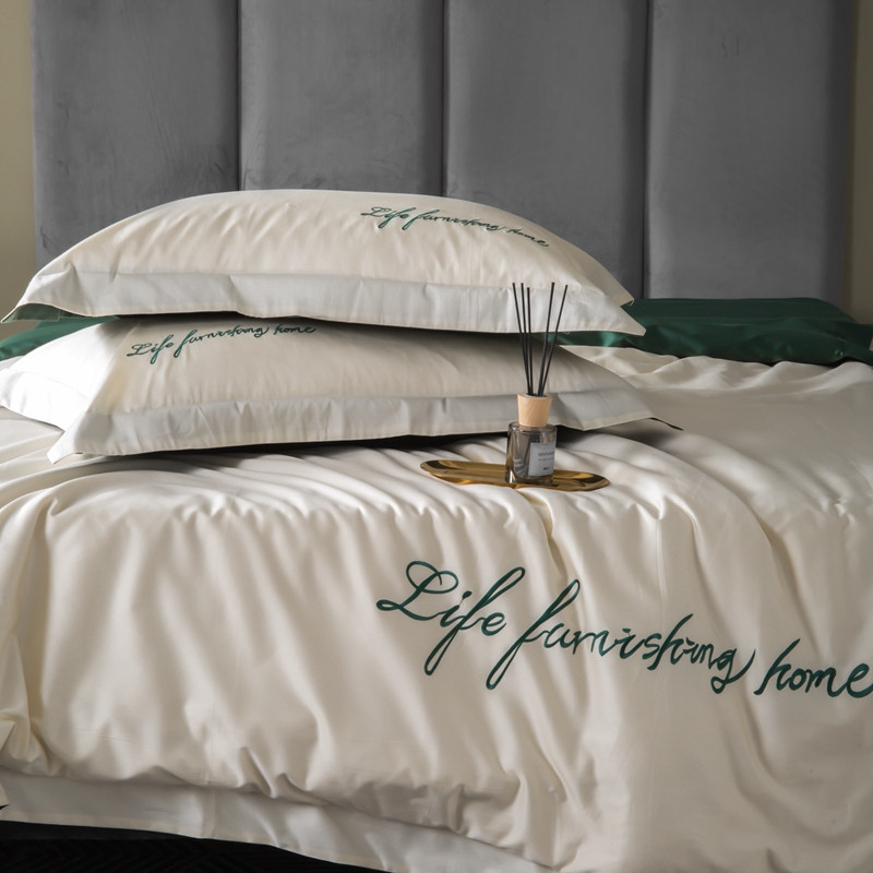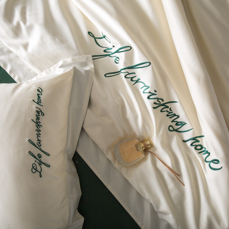太古汇 2020新款纯色双拼绣花四件套 贵族白