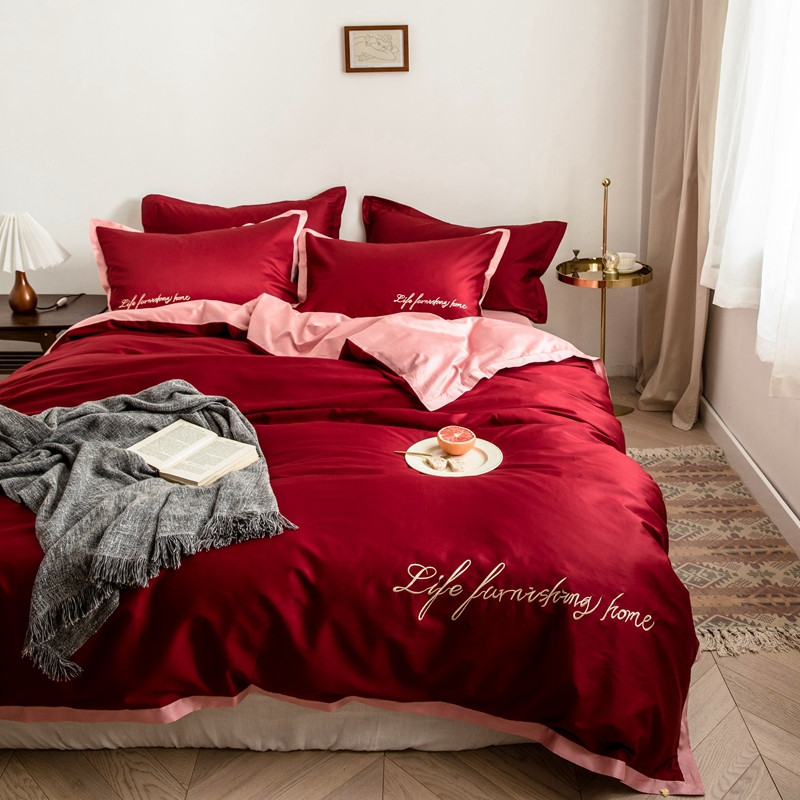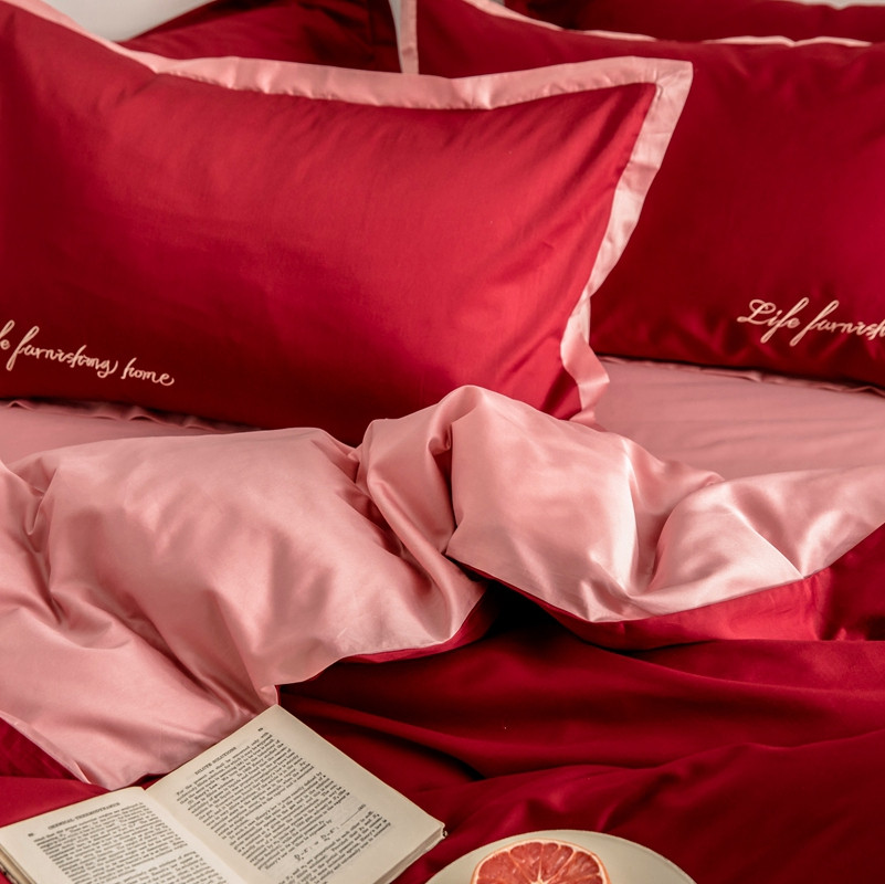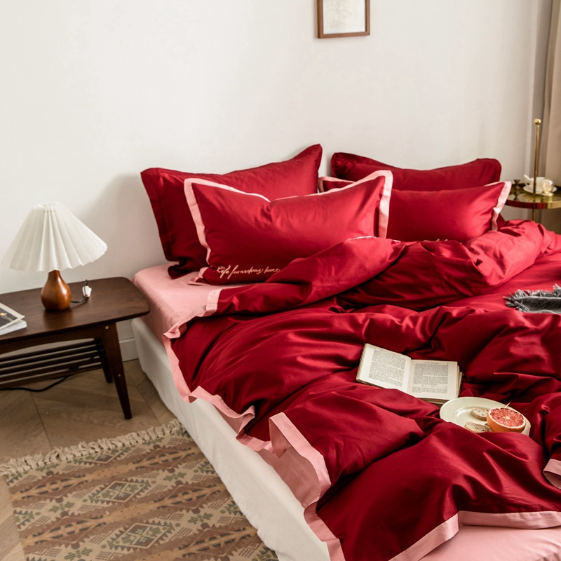 太古汇 2020新款60支贡缎长绒棉双拼四件套棚拍图维尼斯红