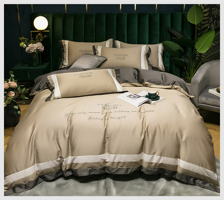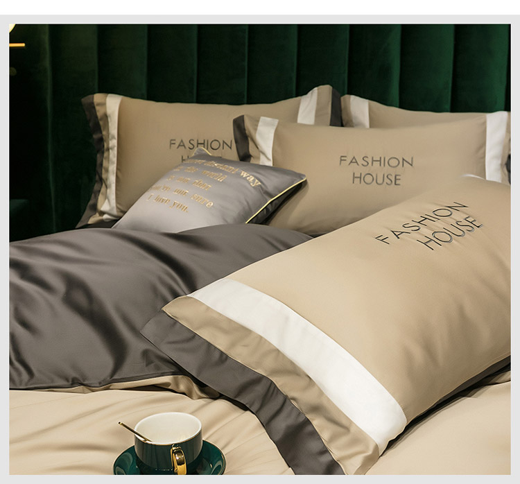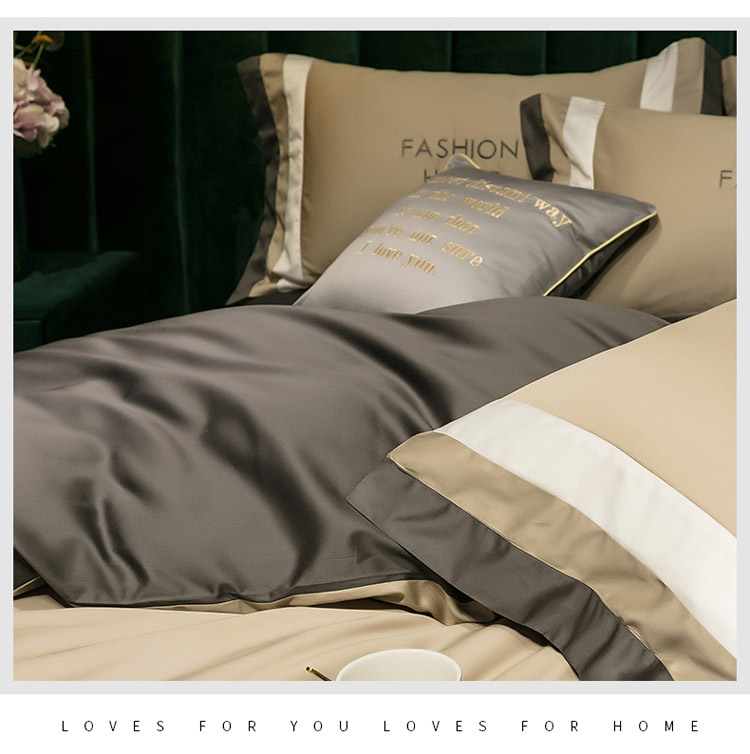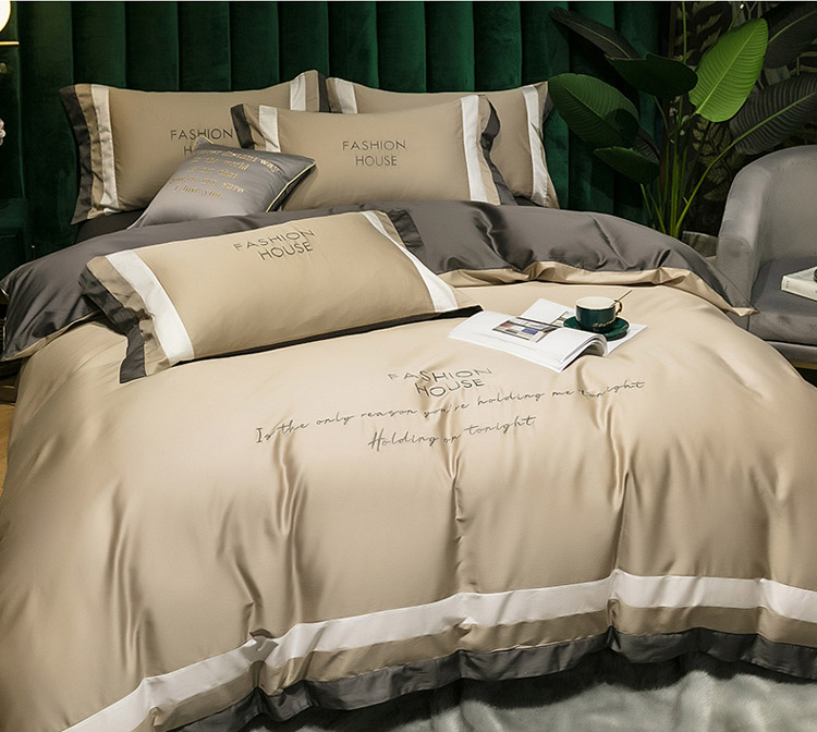 爱缦 2020新款双面60S长绒棉绣花拼接款四件套 米驼