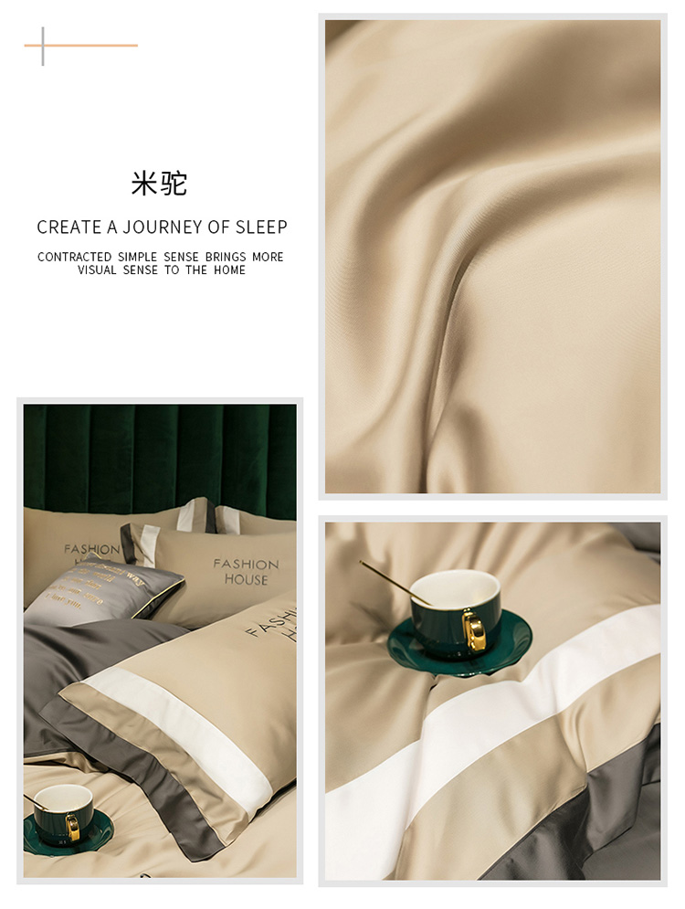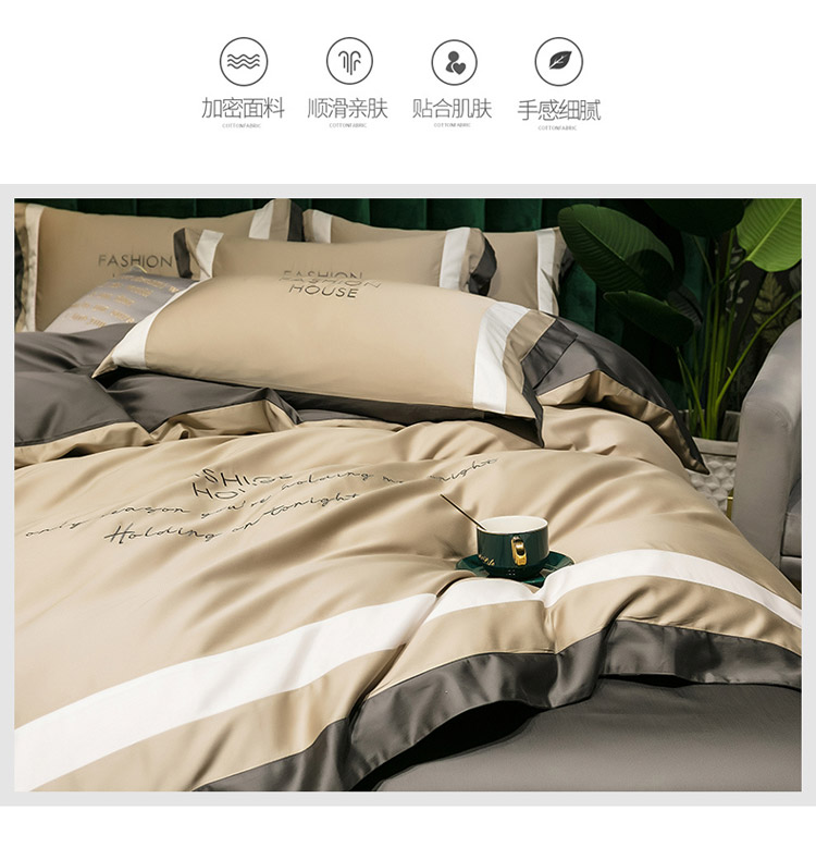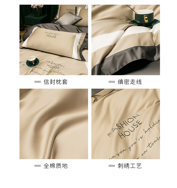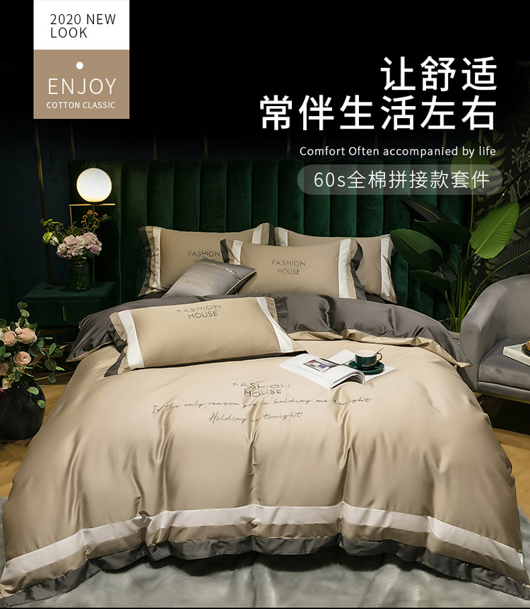 商品名称:爱缦 2020新款双面60S长绒棉绣花拼接款四件套 米驼
