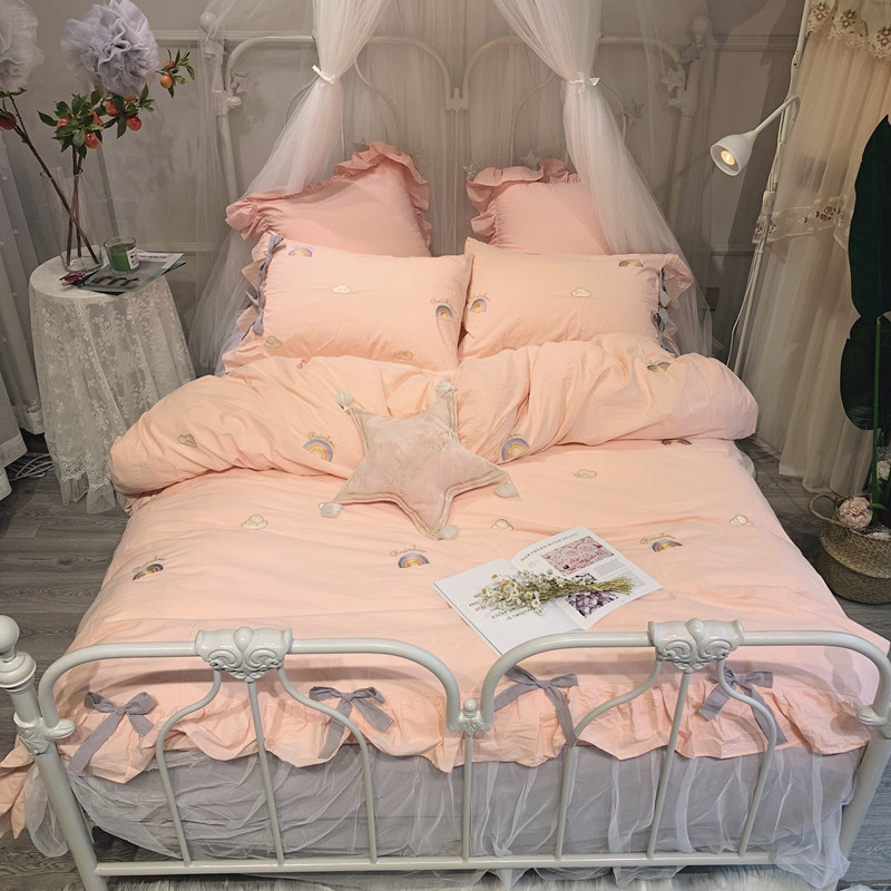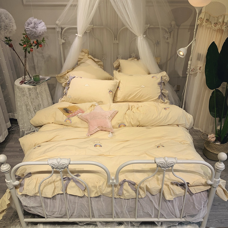 (总)嗨购 2022新款40支水洗棉刺绣花边四件套-阳光玫瑰,阳光玫瑰-粉,阳光玫瑰-黄,阳光玫瑰-蓝