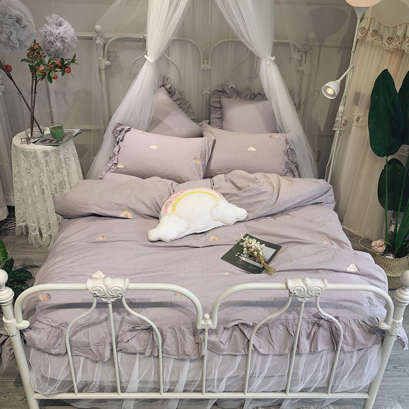 (总)嗨购 2022新款40支水洗棉刺绣花边四件套-复古花花,复古花花-粉,复古花花-绿,复古花花-紫