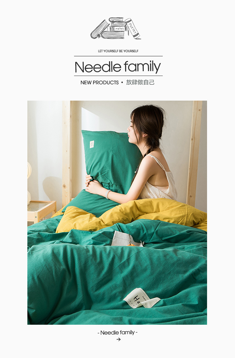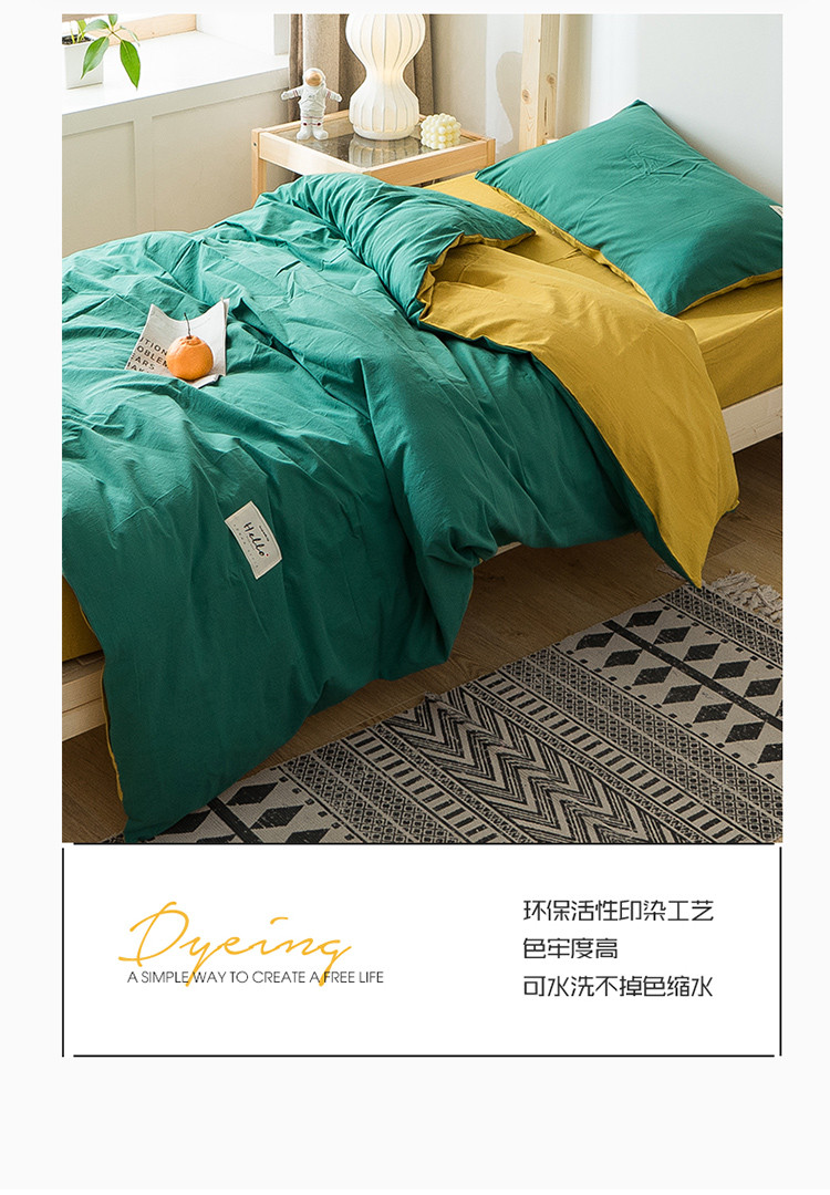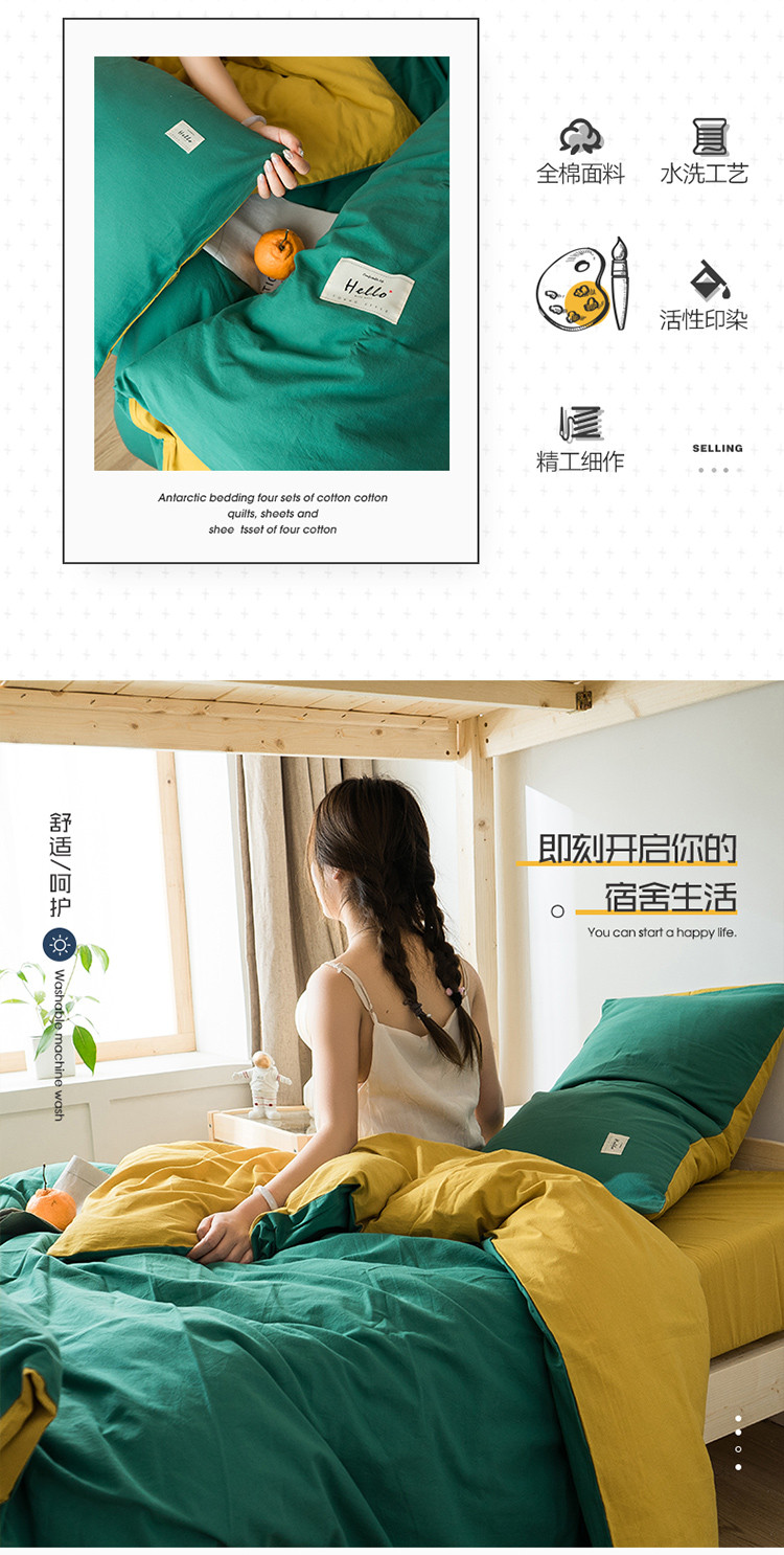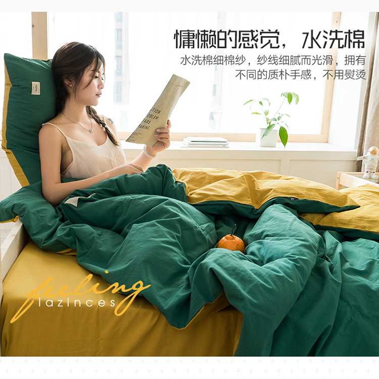 当前位置: 91家纺网 > 商品网购 > 床品套件 > 三件套 > 蓝巢 2020新款全棉水洗棉学生季三件套 墨绿杏黄