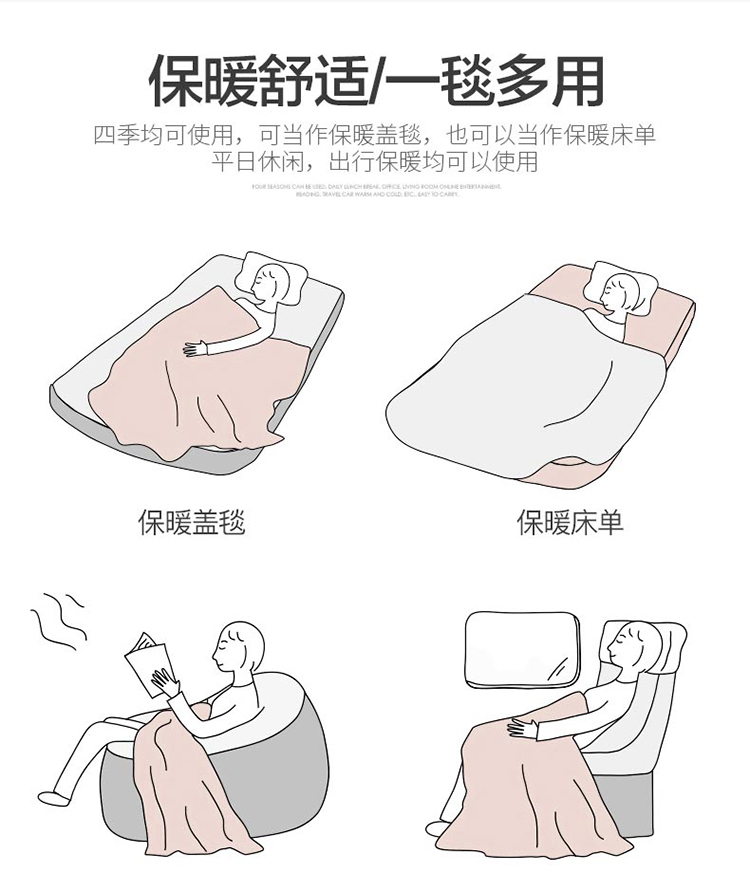 (总)穆琪 2025新款高克重竹节绒毛毯兔毛绒办公家用多功能毯子,薄暮灰,奶茶棕,青竹绿,晴山蓝,珊瑚粉,云朵白