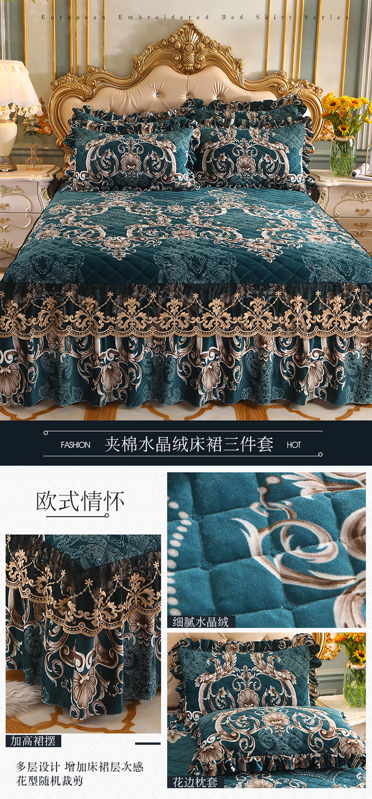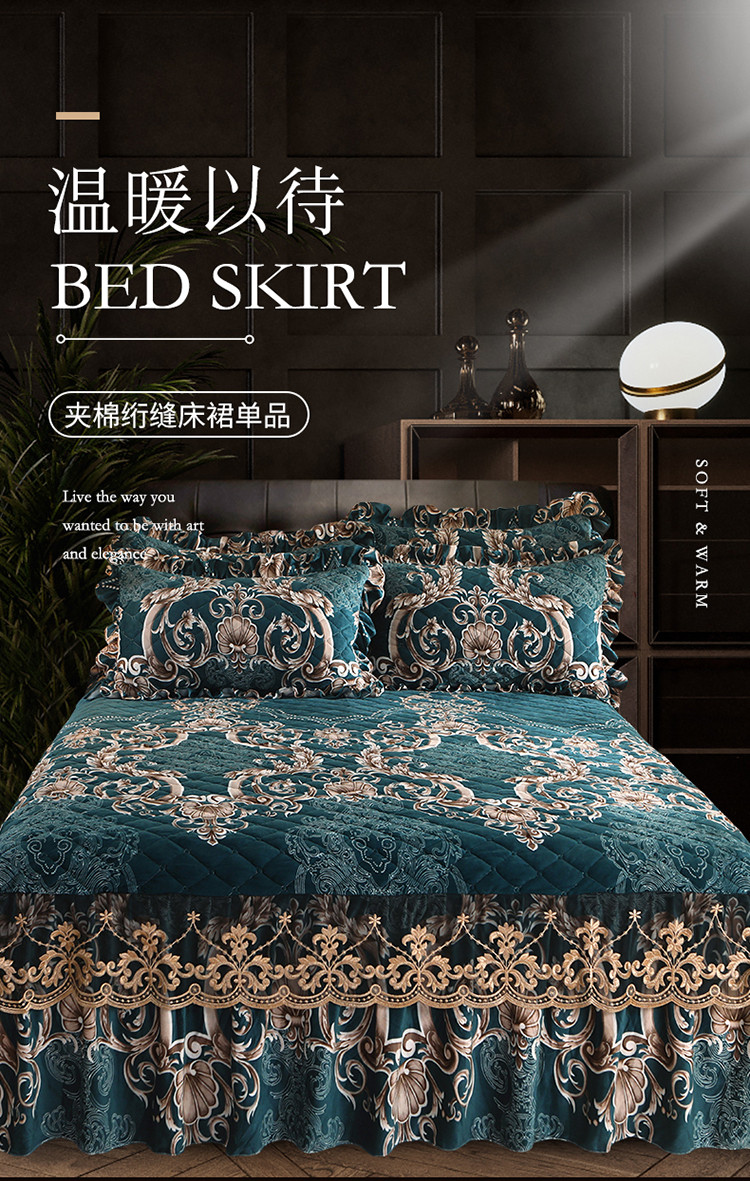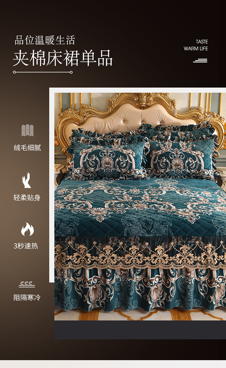 商品名称:宜凡家纺 2021新款夹棉水晶绒单品床裙 欧式情怀