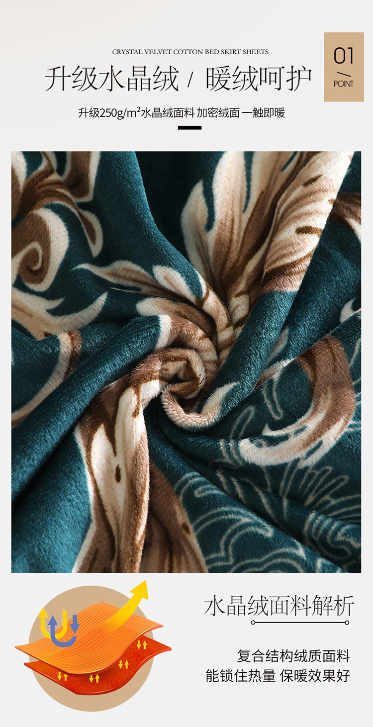 宜凡家纺 2021新款夹棉水晶绒单品床裙 欧式情怀