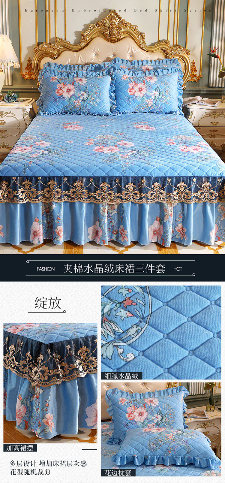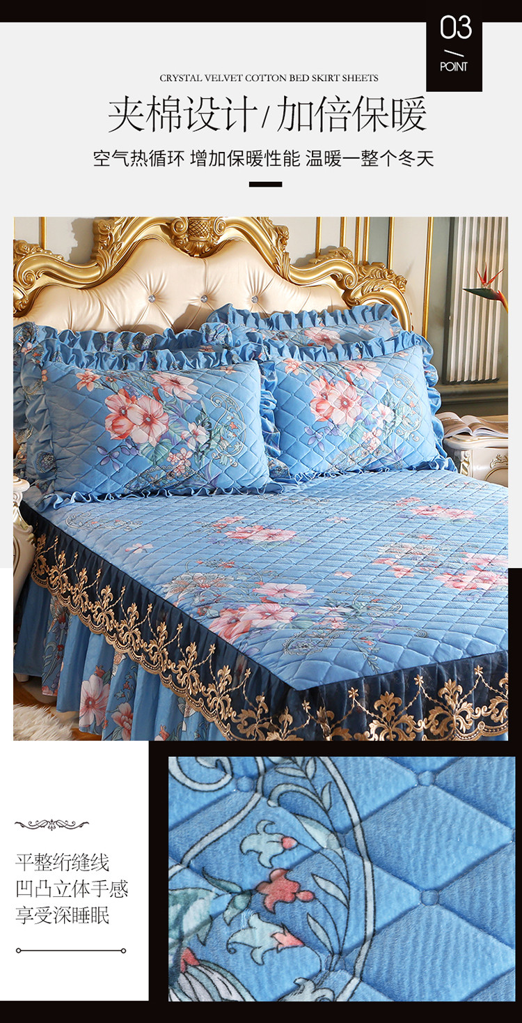 商品名称:宜凡家纺 2021新款夹棉水晶绒单品床裙 绽放