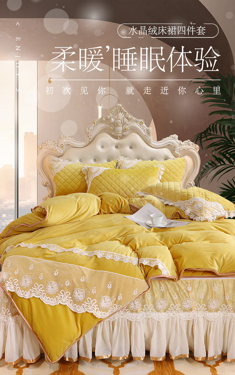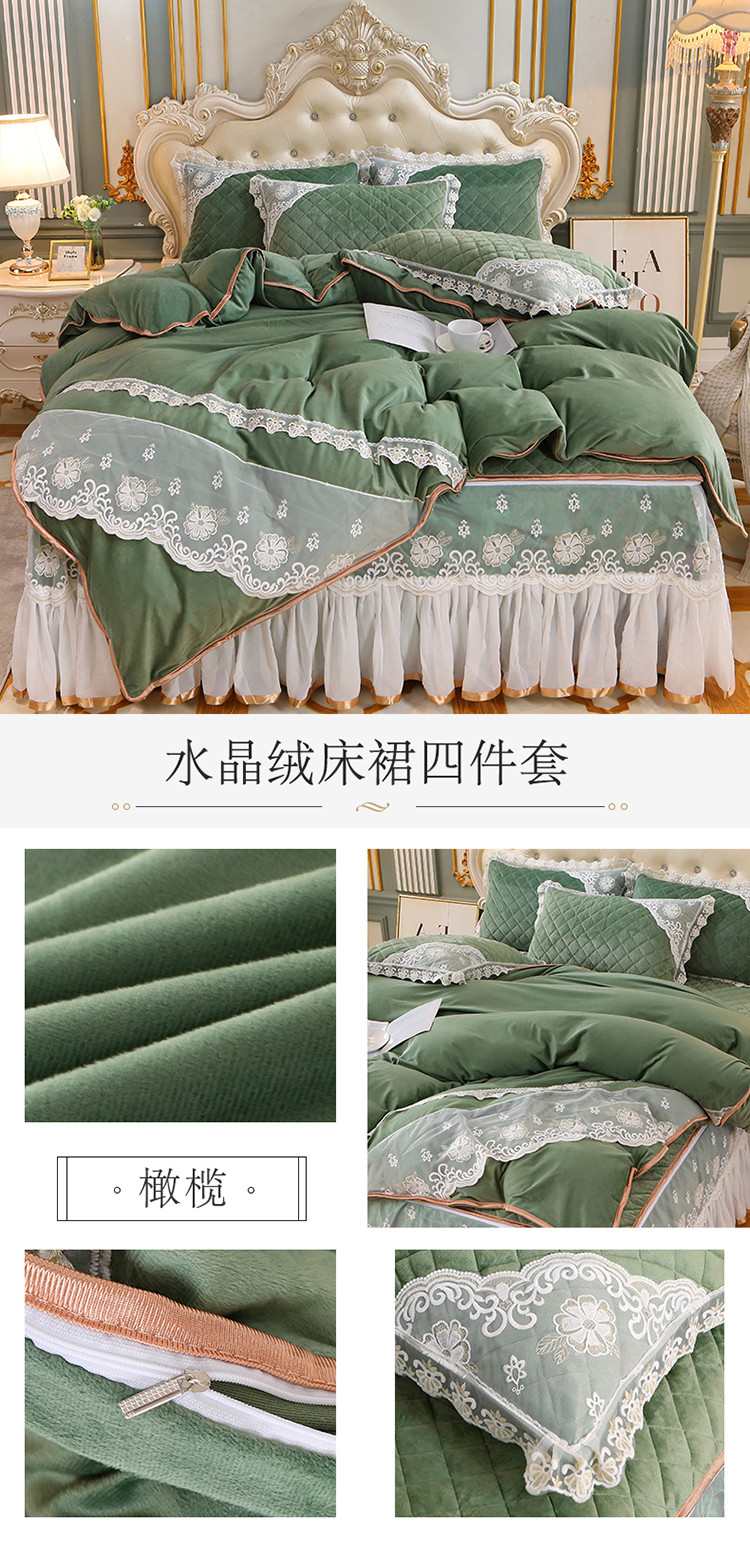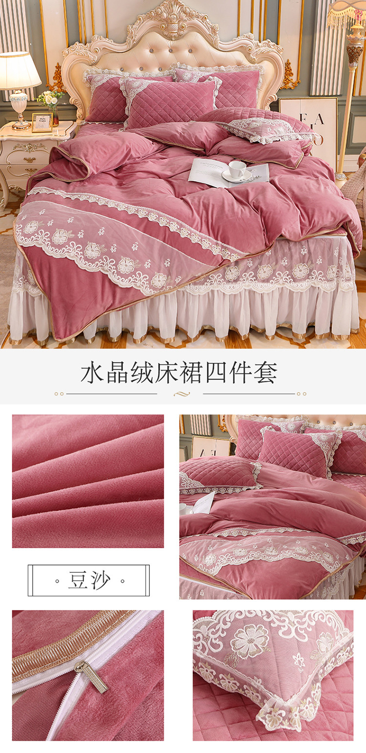 (总)网红馆 2025新款水晶绒蕾丝床裙四件套