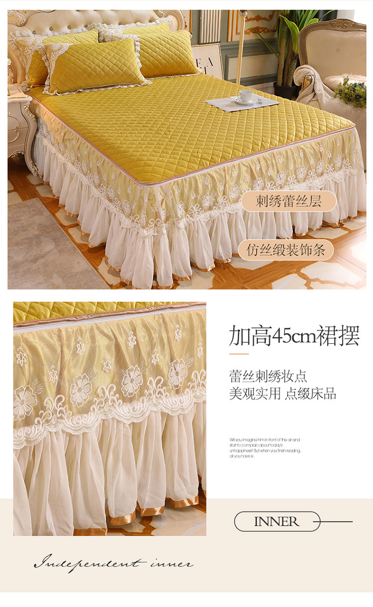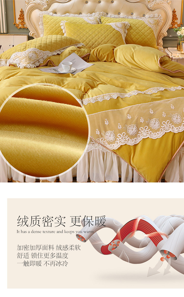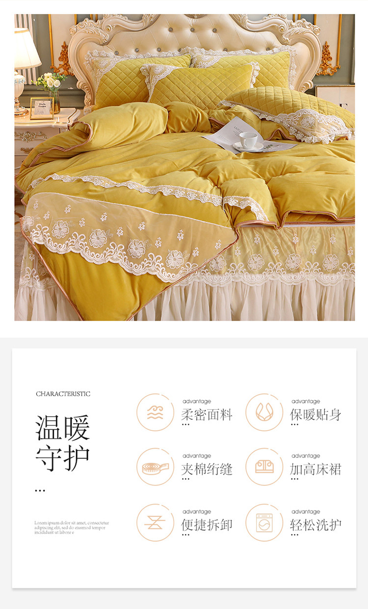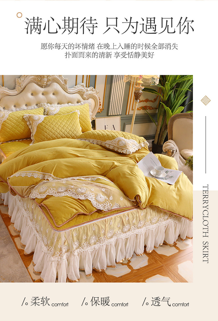(总)网红馆 2025新款水晶绒蕾丝床裙四件套