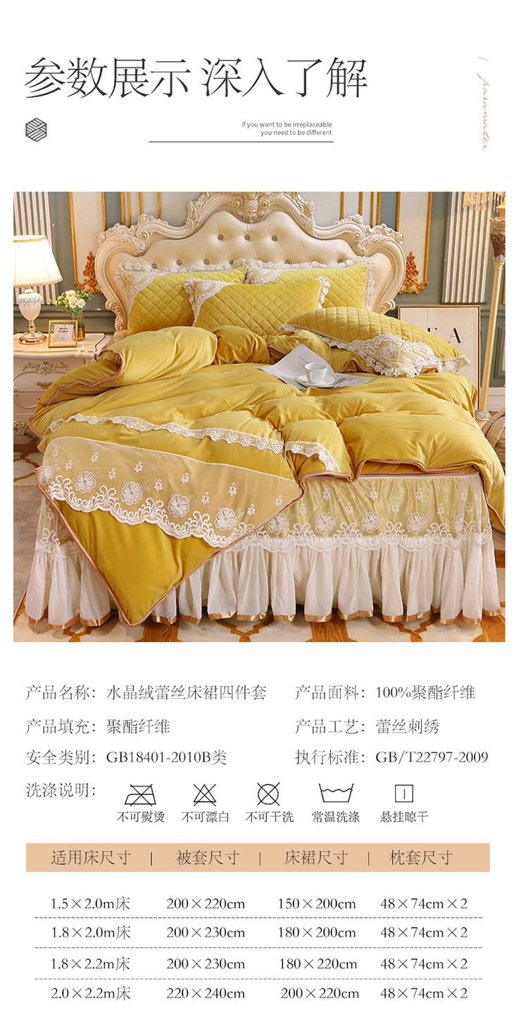 商品名称:(总)网红馆 2025新款水晶绒蕾丝床裙四件套
