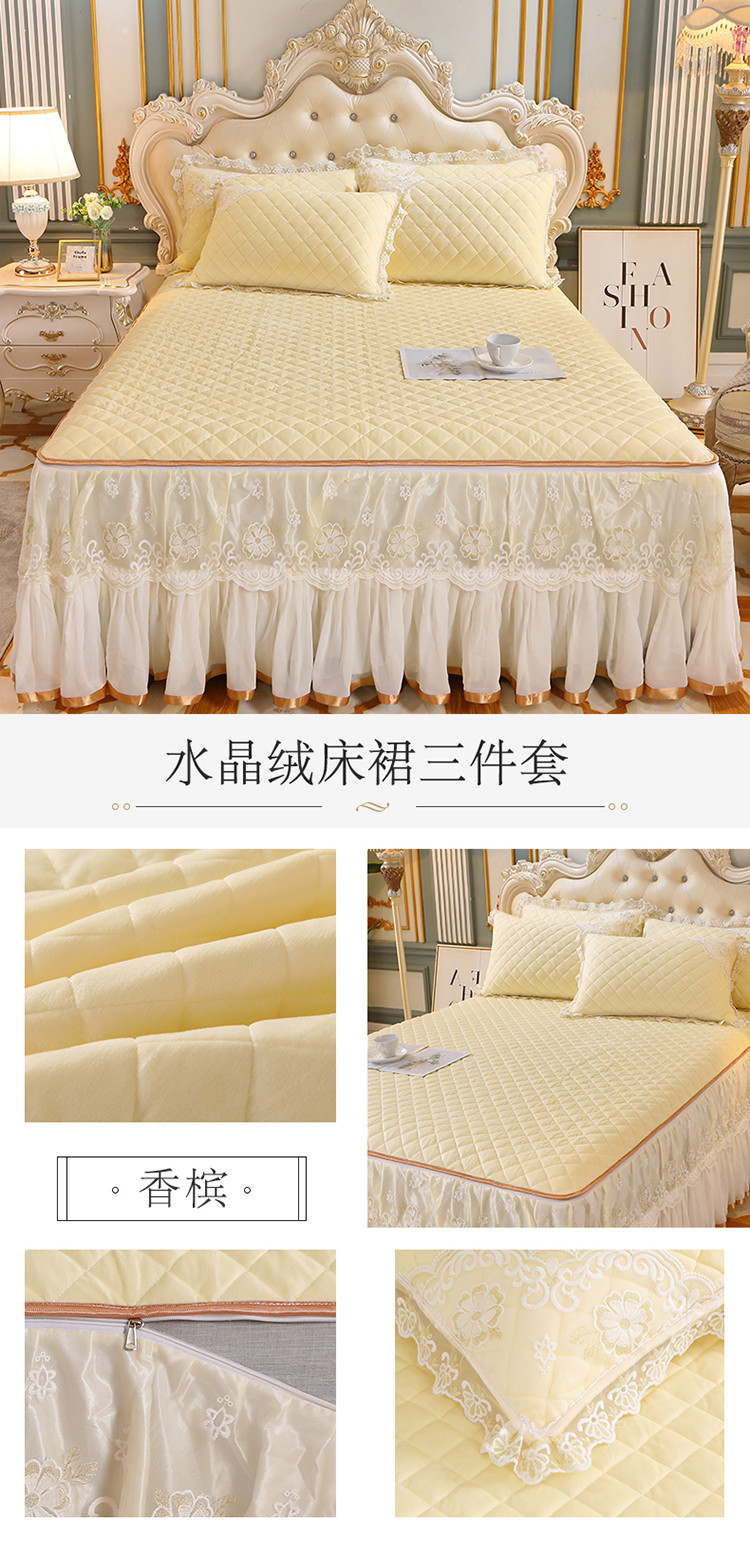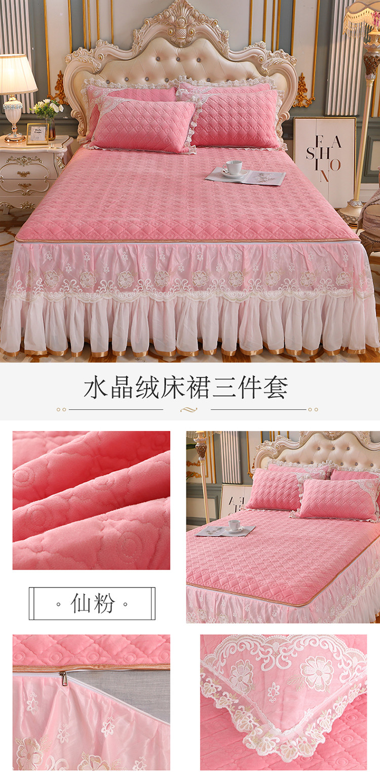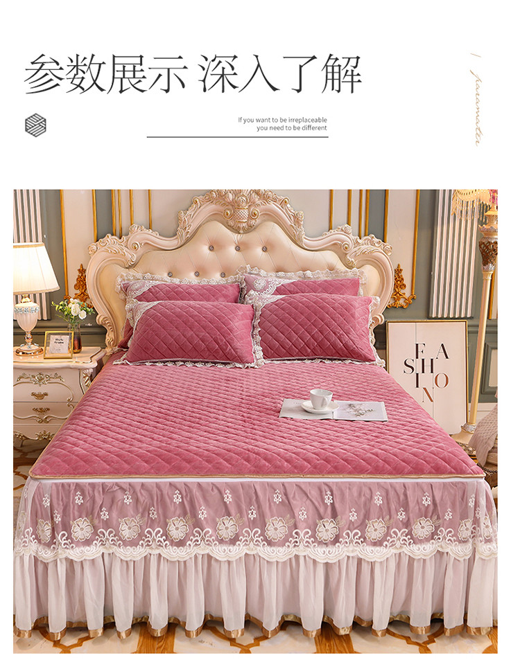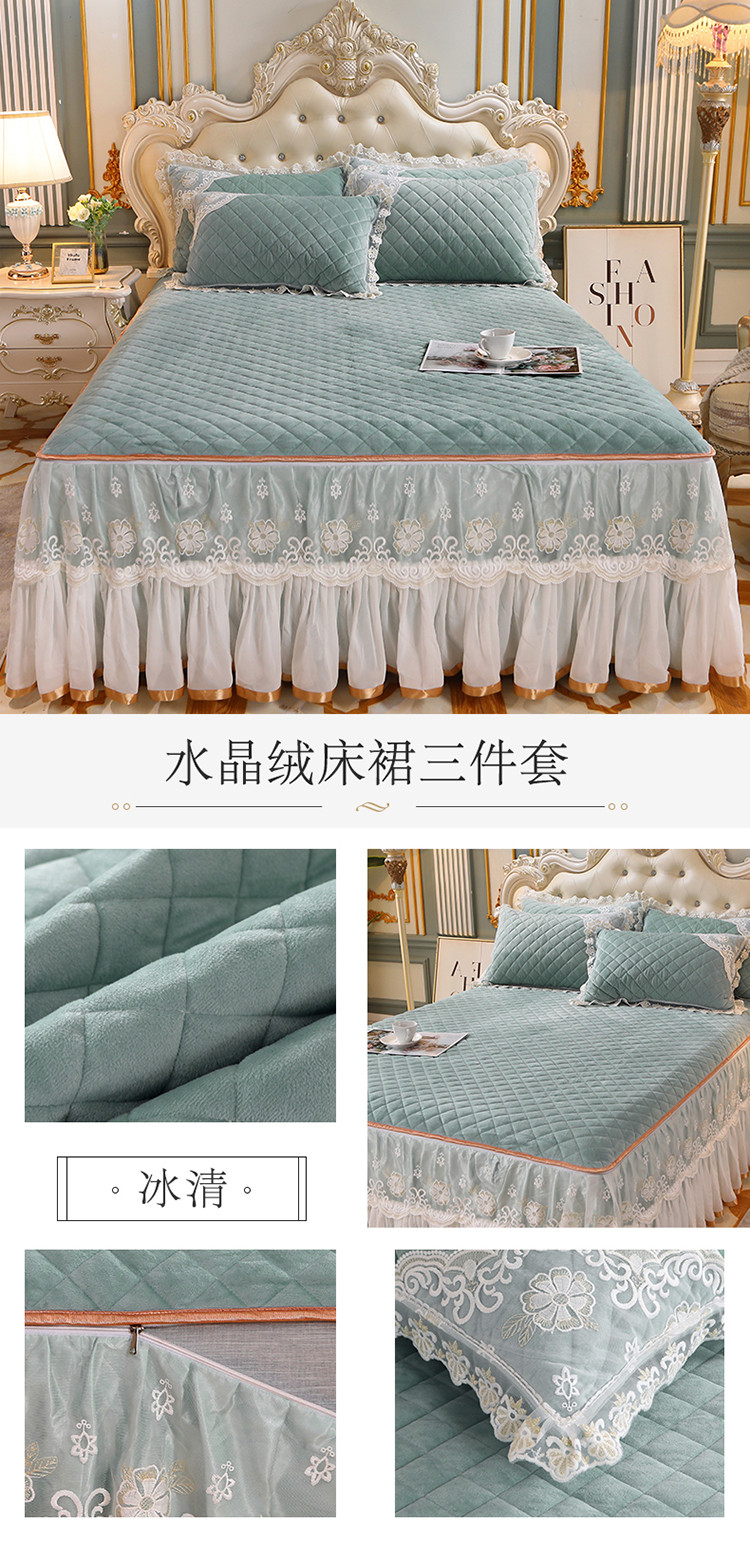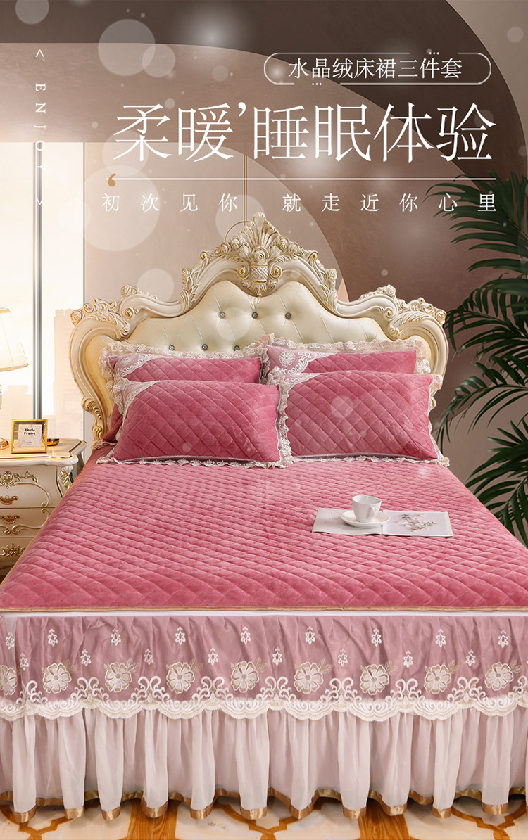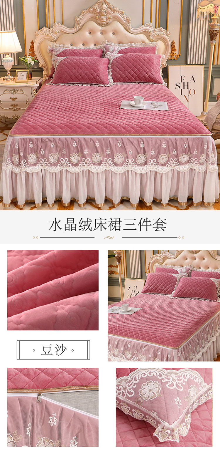 (总)网红馆 2025新款水晶绒蕾丝单品床裙被套枕套
