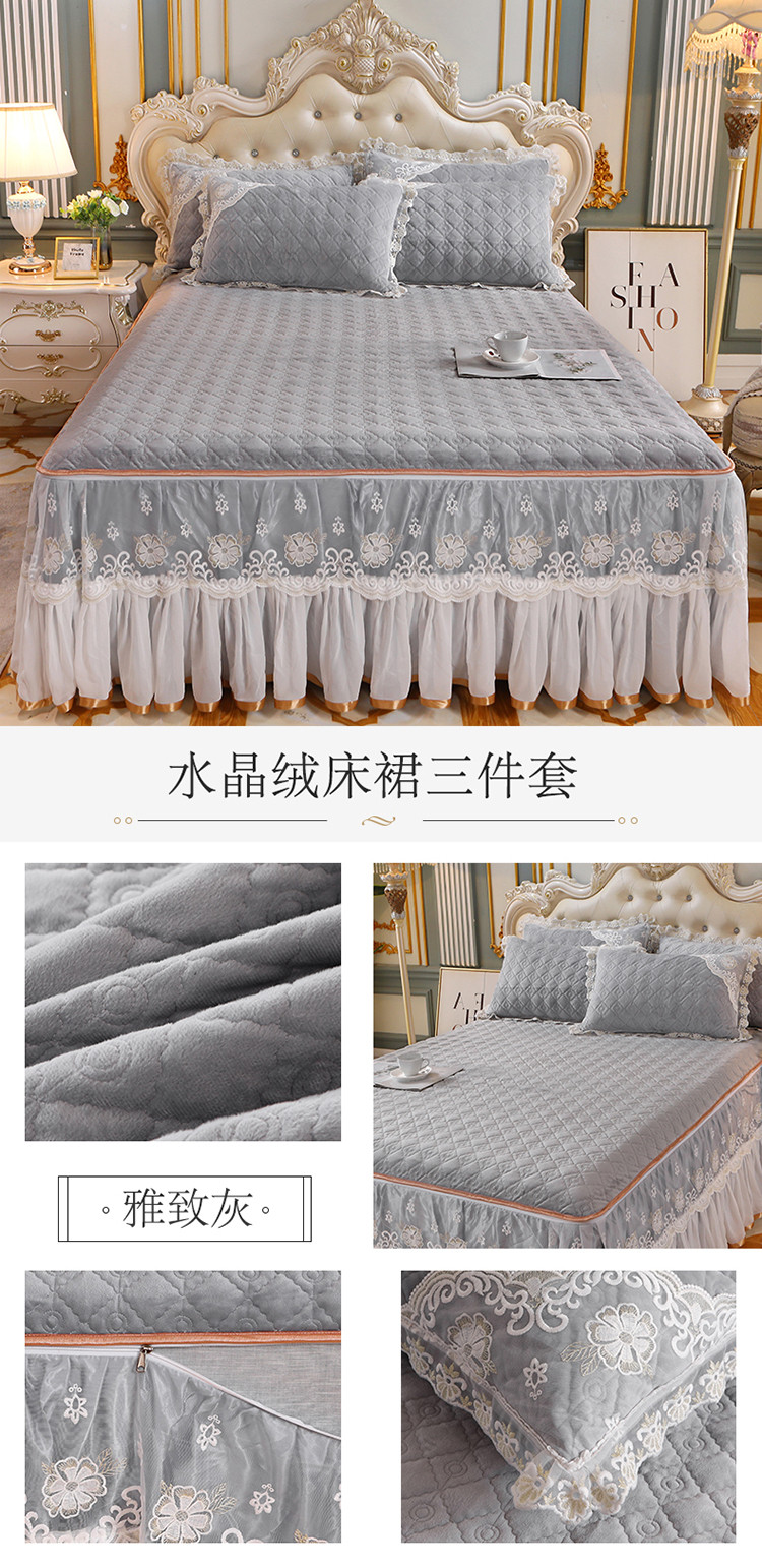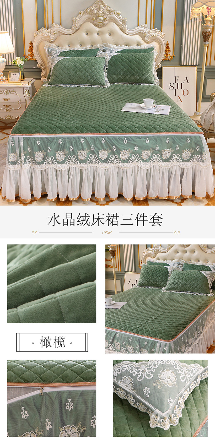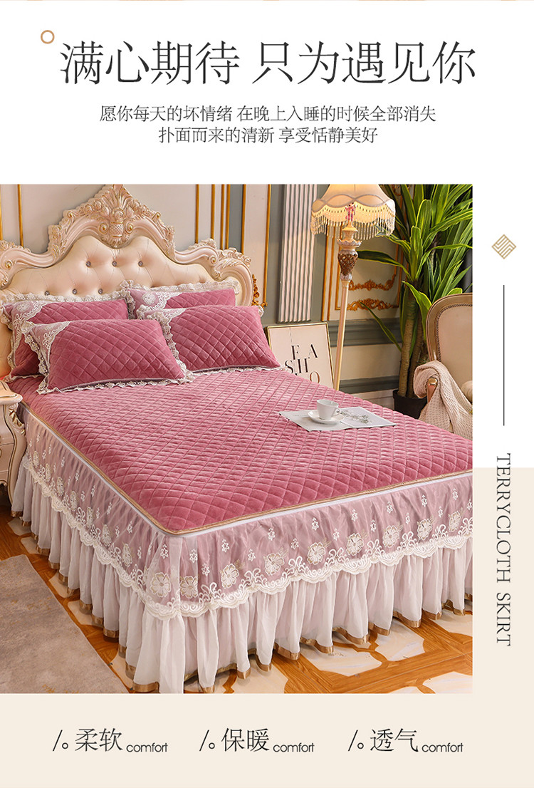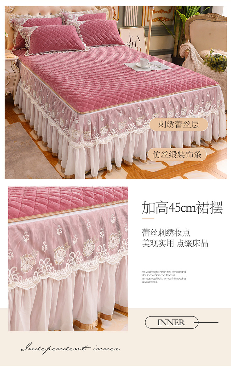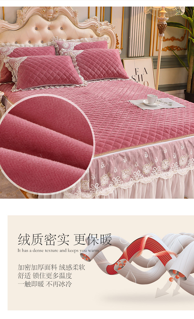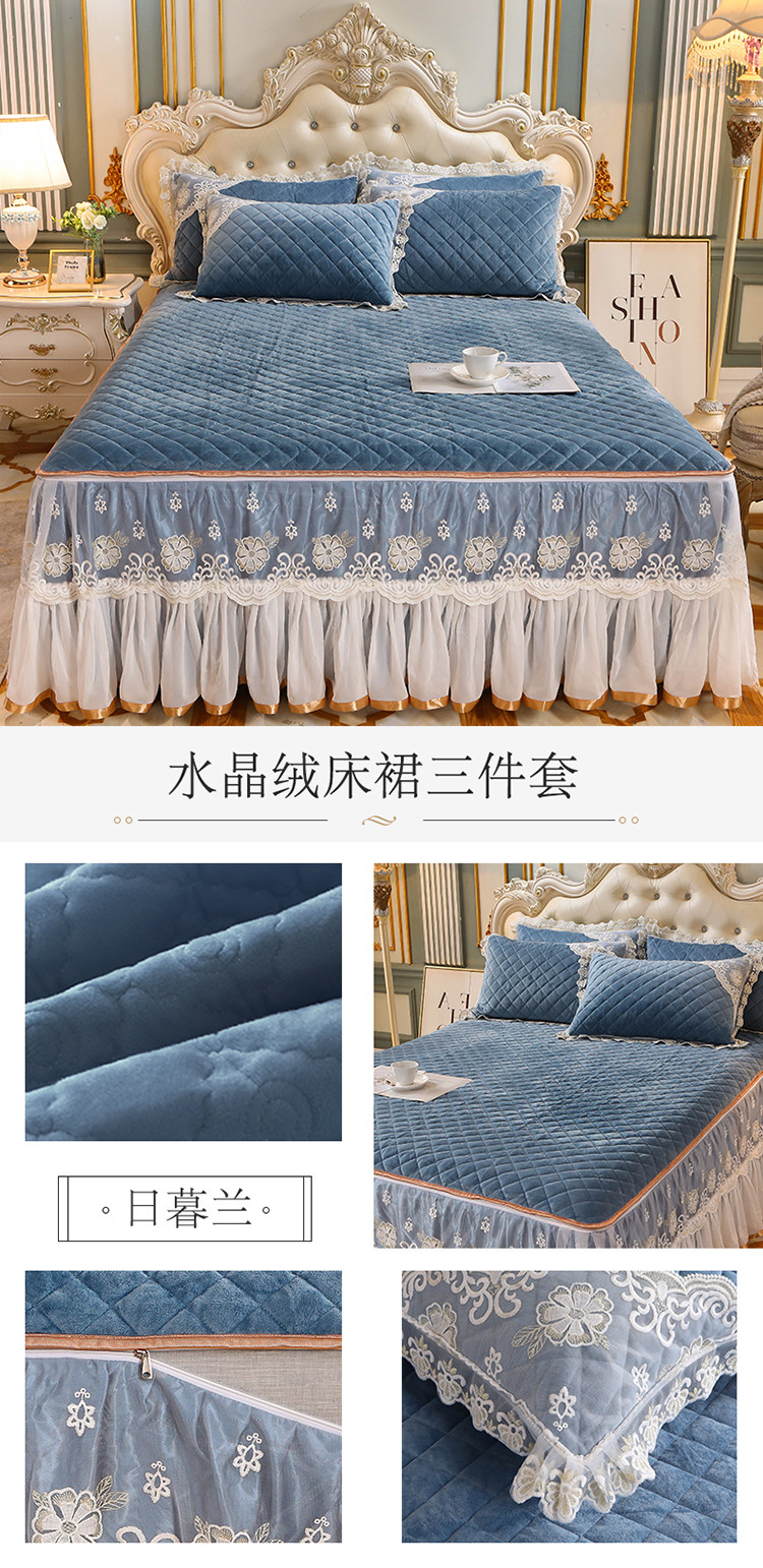 (总)网红馆 2025新款水晶绒蕾丝单品床裙被套枕套