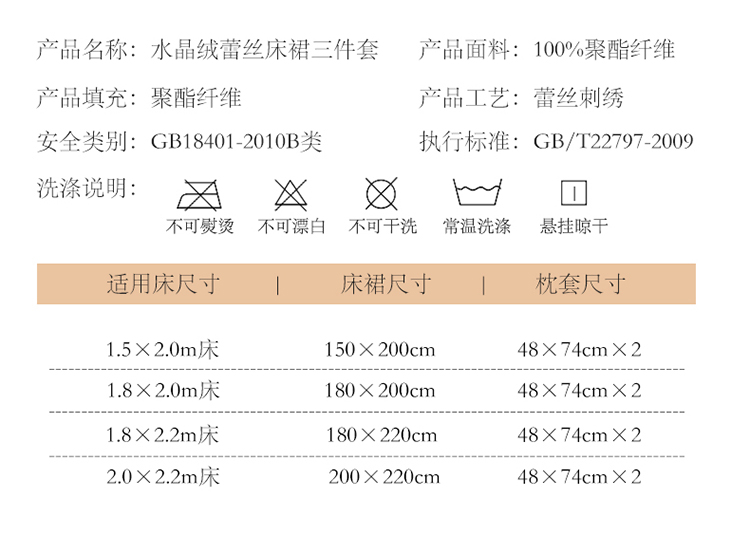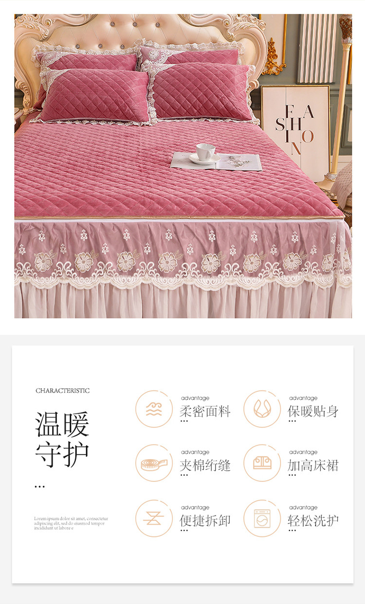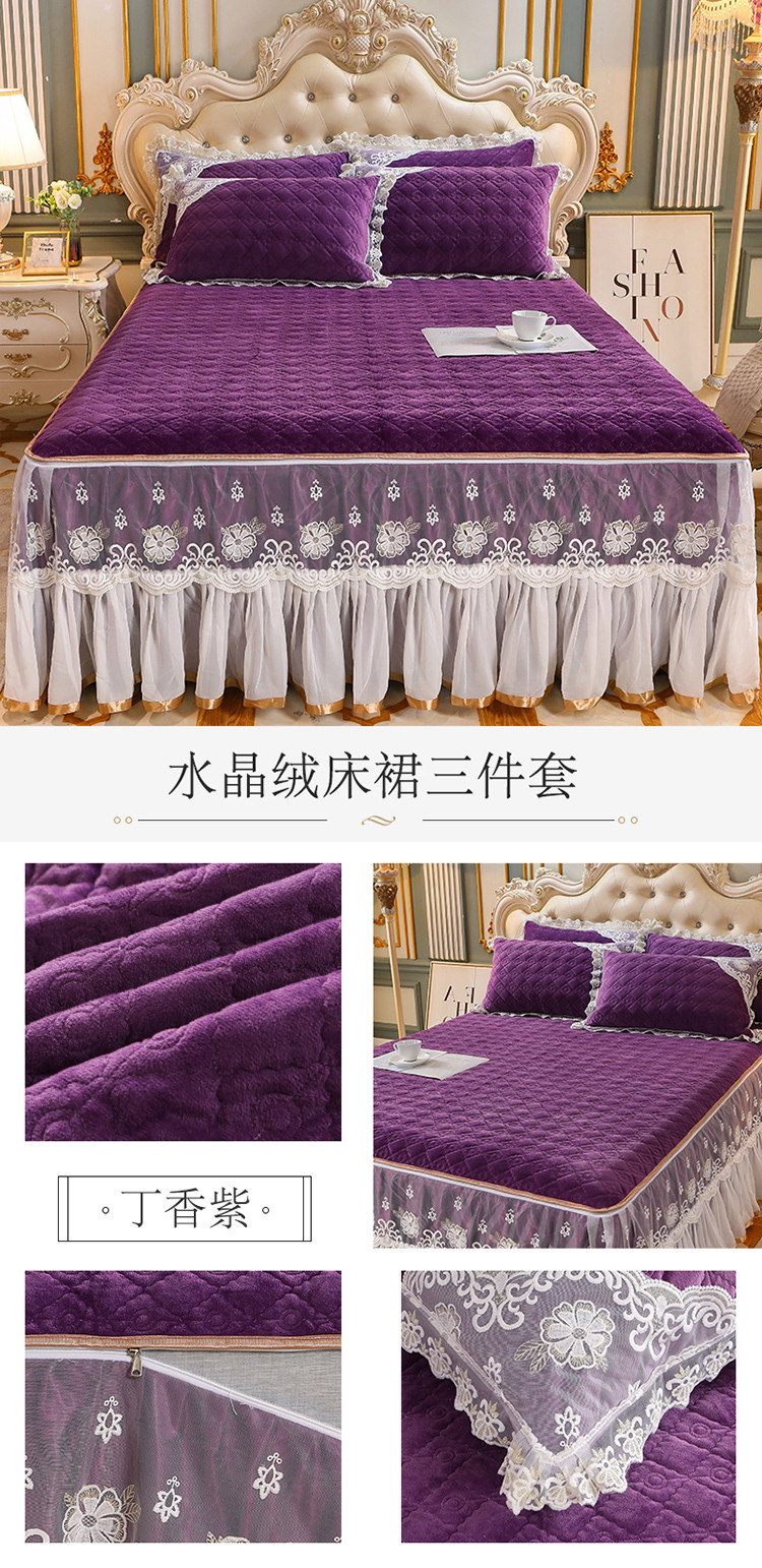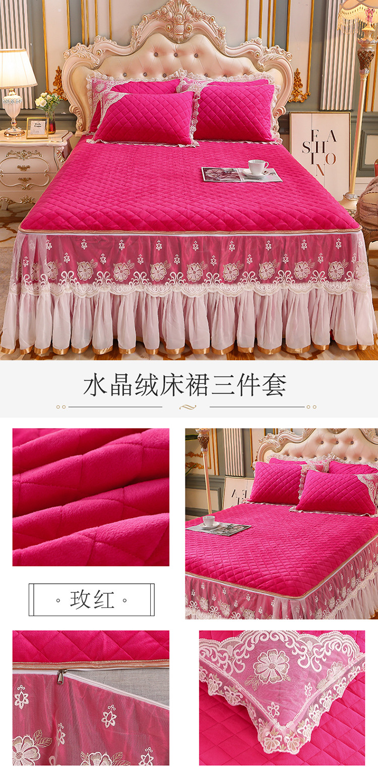 商品名称:(总)网红馆 2025新款水晶绒蕾丝单品床裙被套枕套