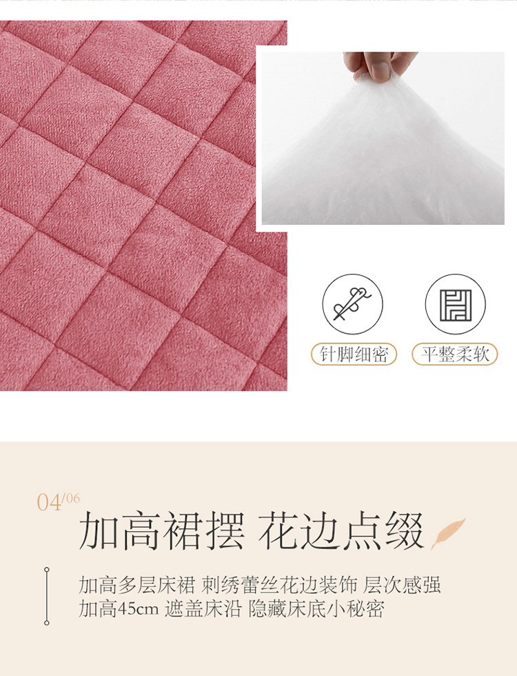 (总)网红馆(ck家纺) 2025新款高克重牛奶绒单床裙 床裙单件卡妮娜系列,卡妮娜-粉色,卡妮娜-灰色,卡妮娜-卡其,卡妮娜-绿色,卡妮娜-米色