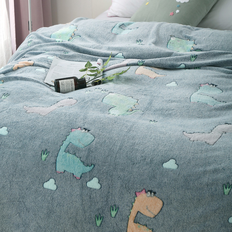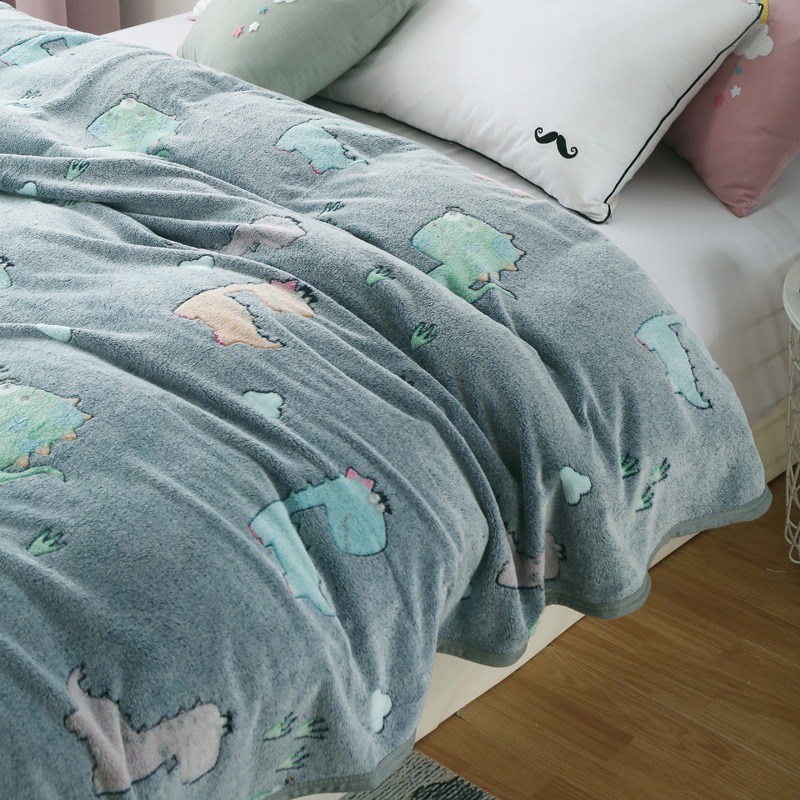 好艺佳新款240克雪花绒毯法莱绒毯床单加厚毛毯恐龙王国