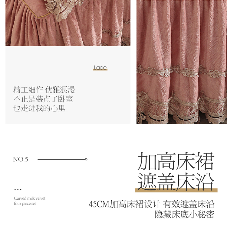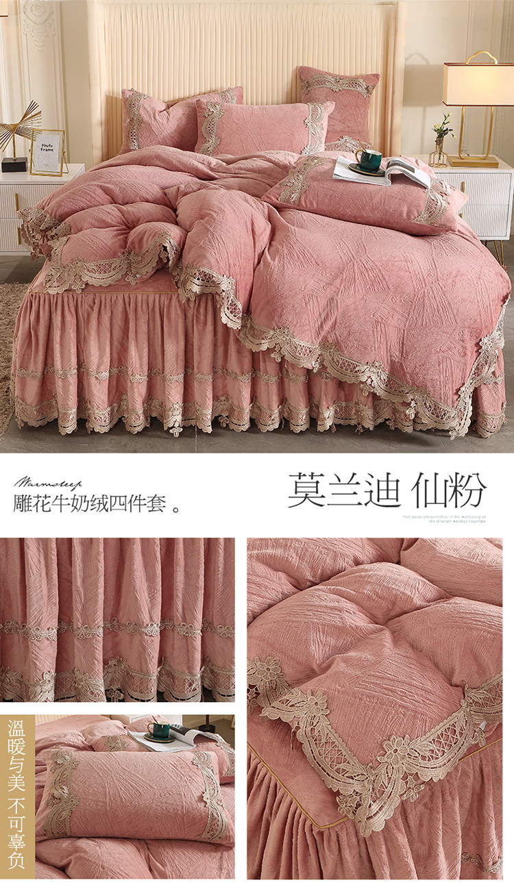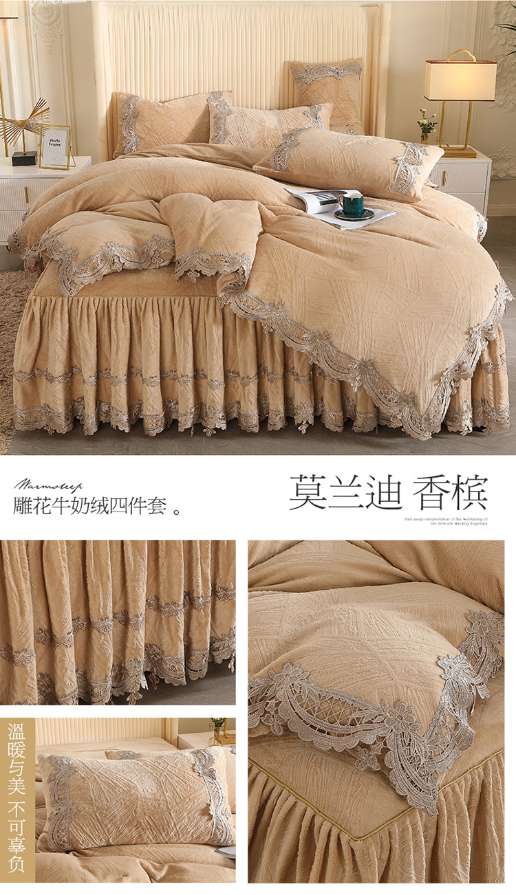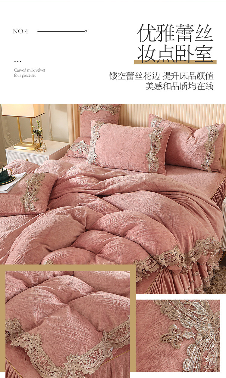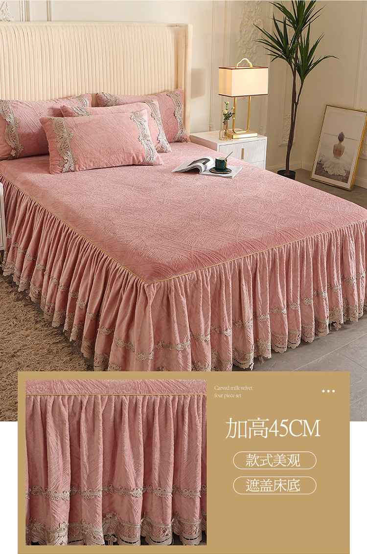 (总)网红馆 2025新款牛奶绒雕花床裙四件套