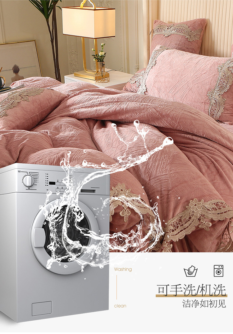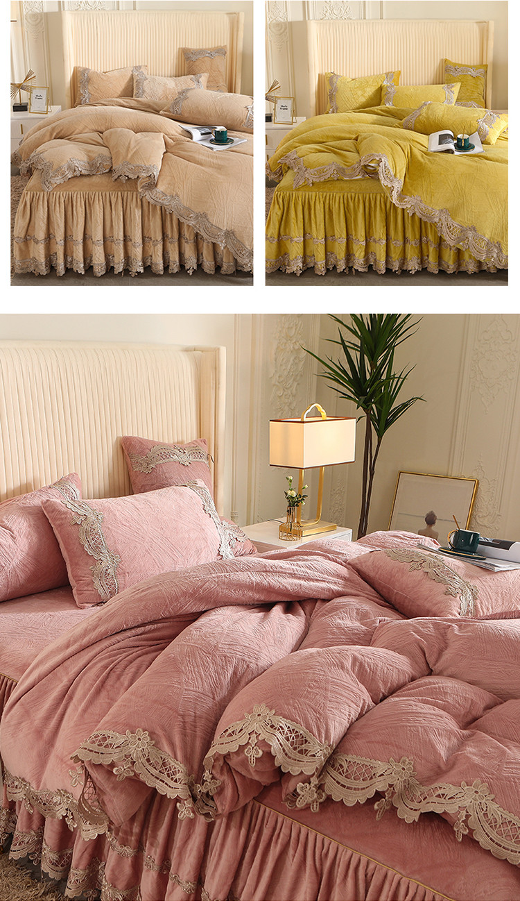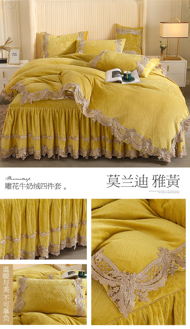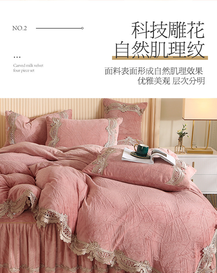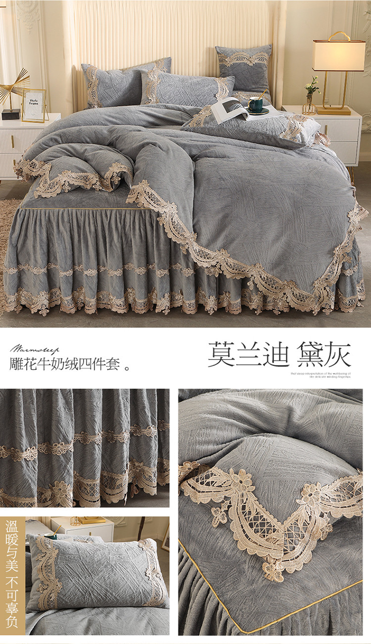 (总)网红馆 2025新款牛奶绒雕花床裙四件套