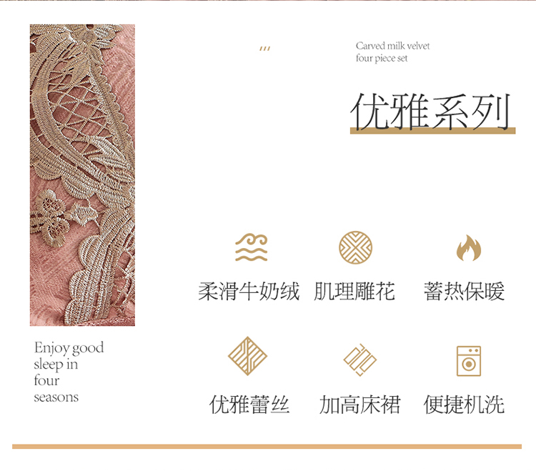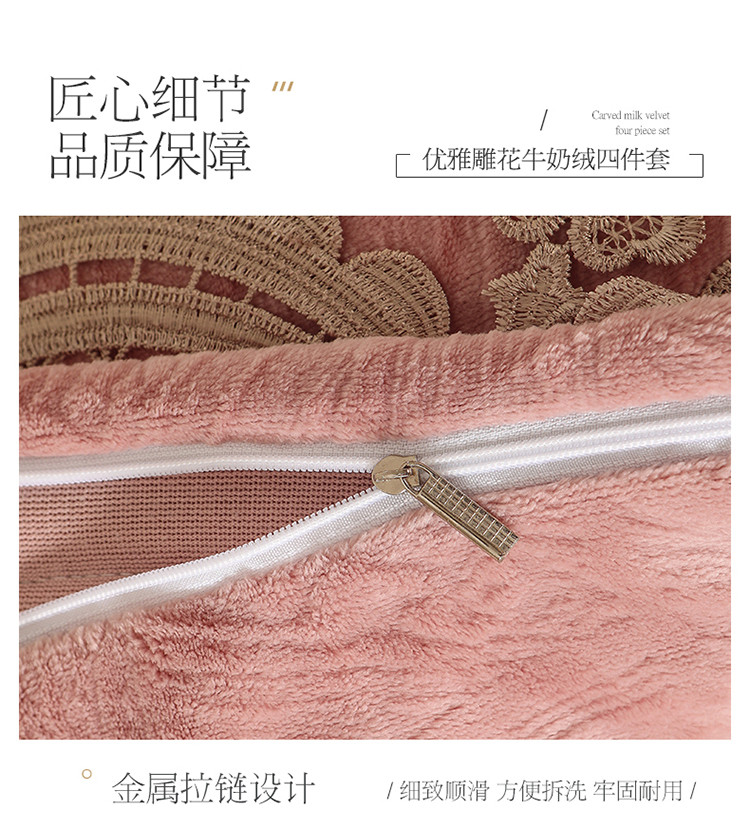 (总)网红馆(ck家纺) 2025新款牛奶绒雕花花边四件套--国色天香,国色天香 豆沙,国色天香 卡其,国色天香 兰色