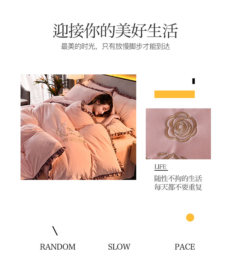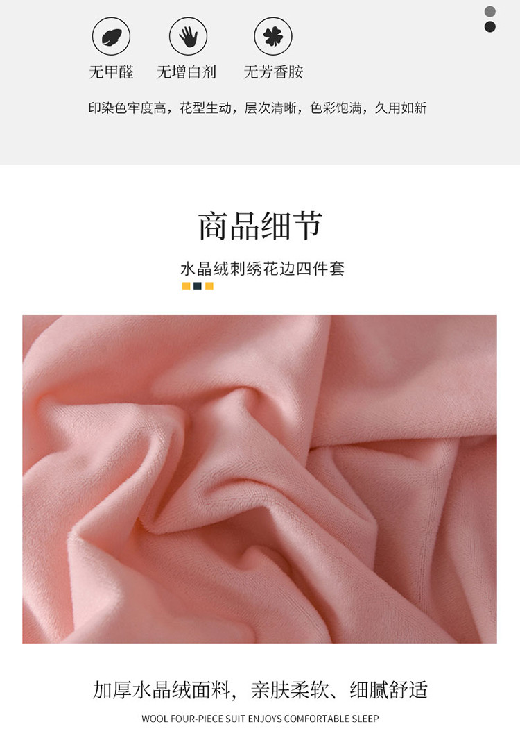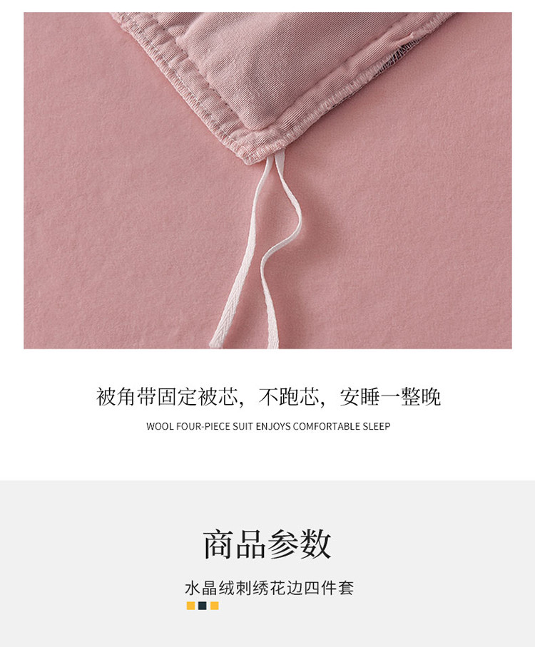 商品名称:米奈2020款朵拉高克重水晶绒木耳边系列四件套 粉色+紫边