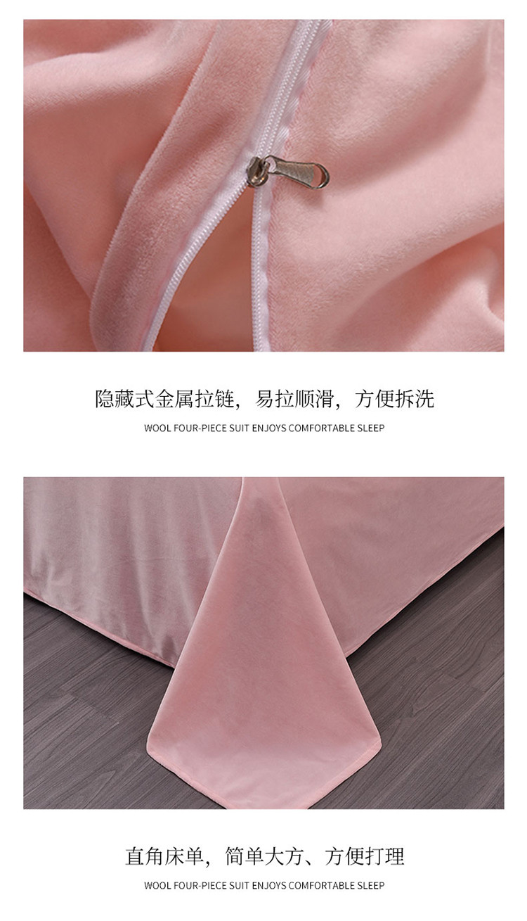 (总)米奈家居 2025新款A类高克重婴儿绒四件套-吉娜系列,淡雅粉,豆沙绿,孔雀绿,奶昔白+浅灰,浅杏色,绅士灰,西瓜粉,芋泥紫