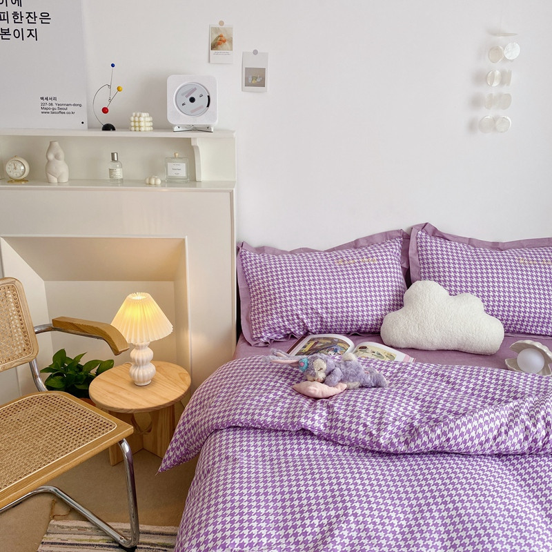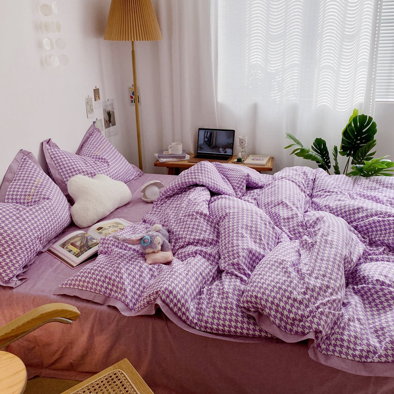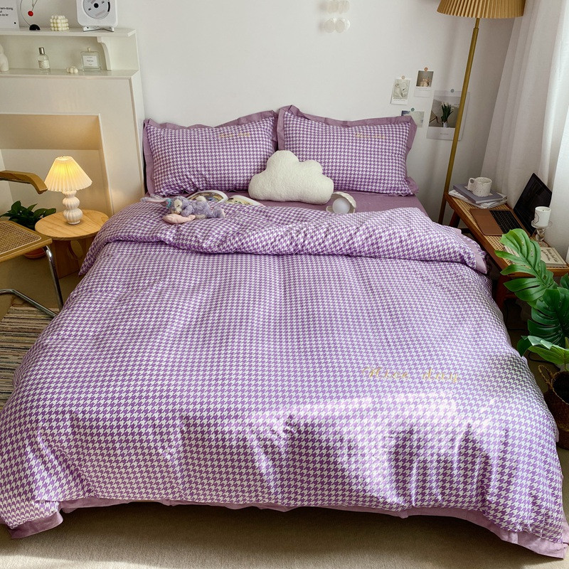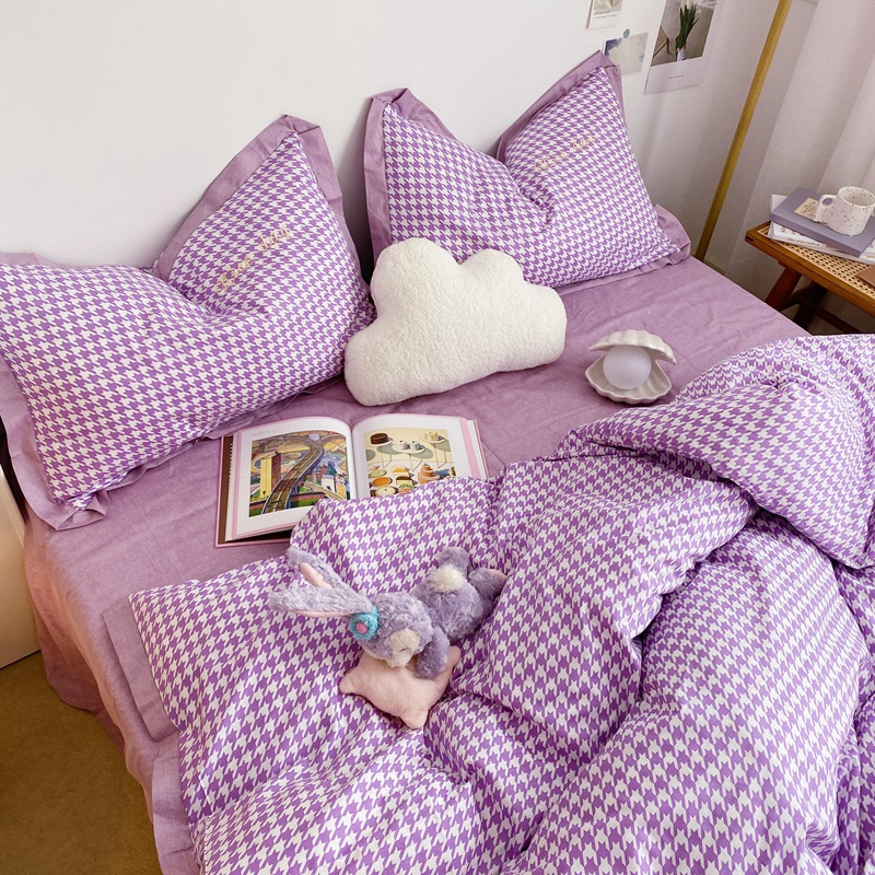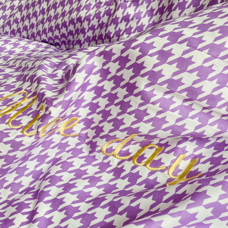 星期八 2021新款13372千鸟格刺绣四件套 千鸟格紫