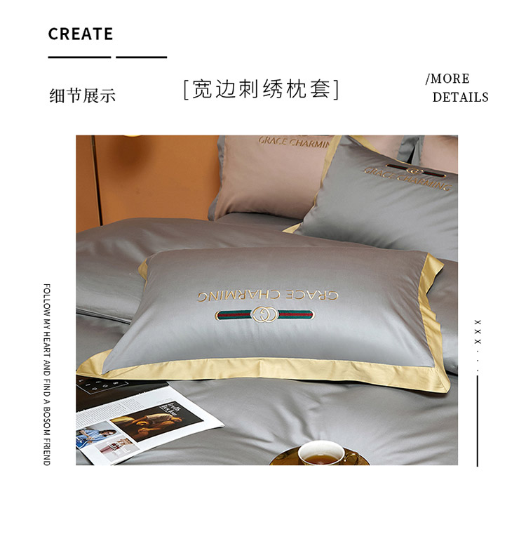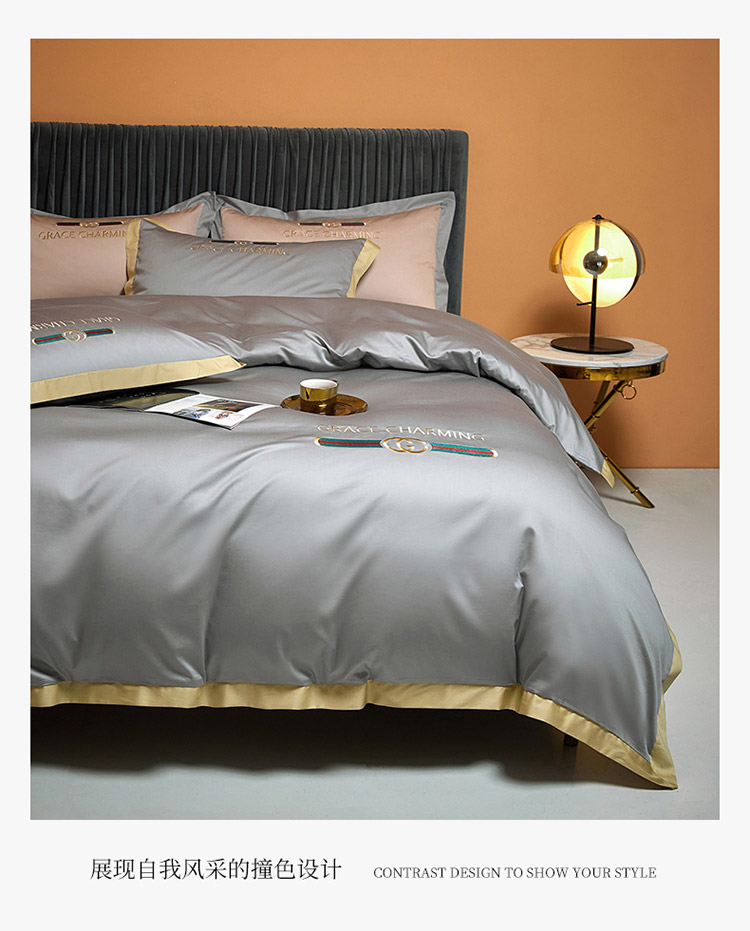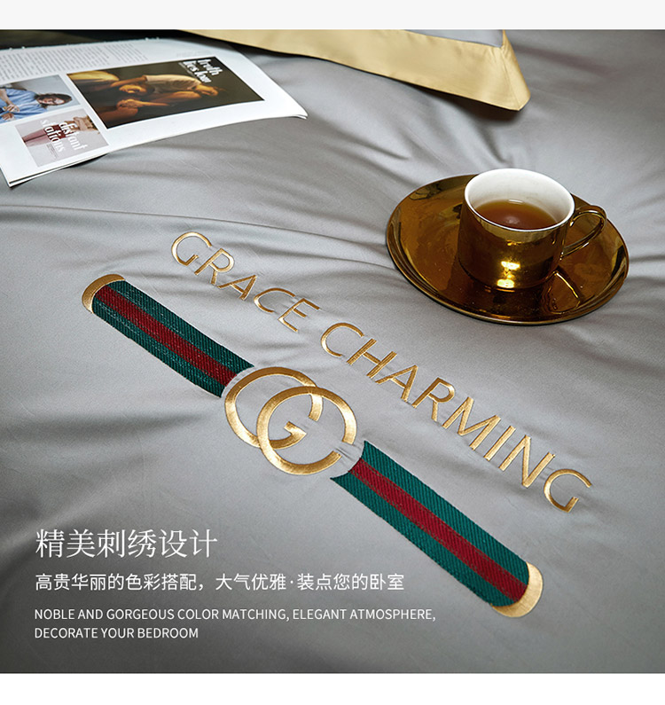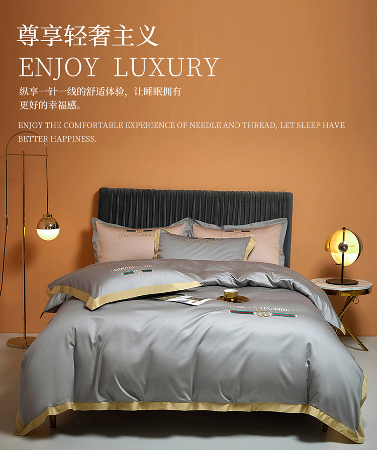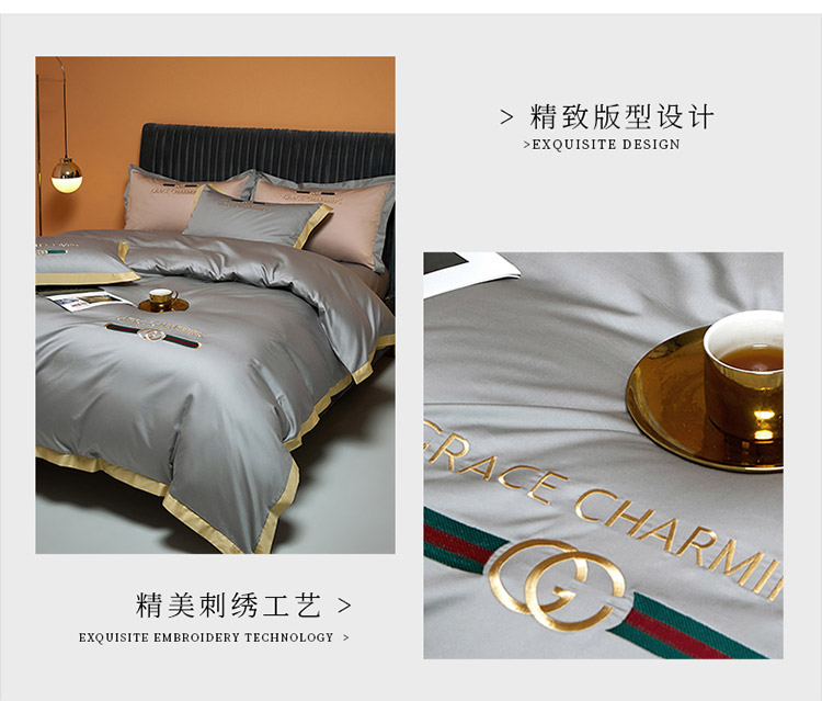 爱缦 2021新款格蕾丝棚拍100支澳棉四件套 弥漫灰
