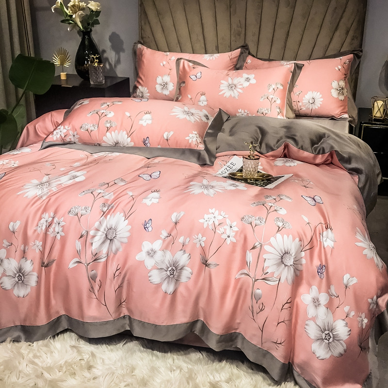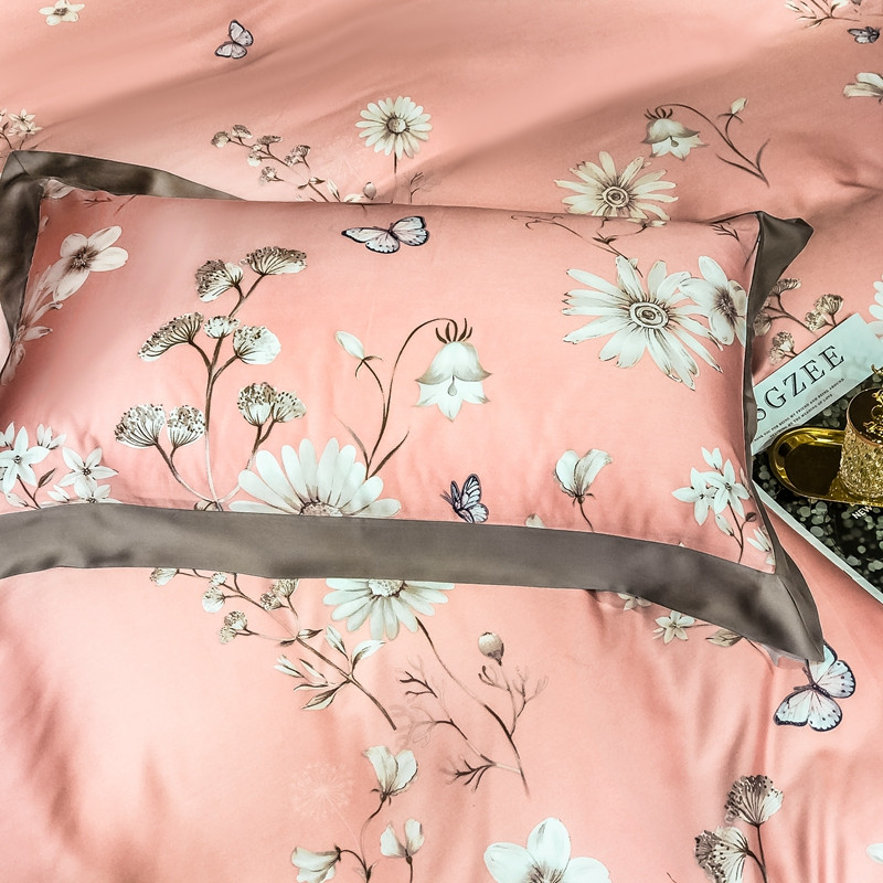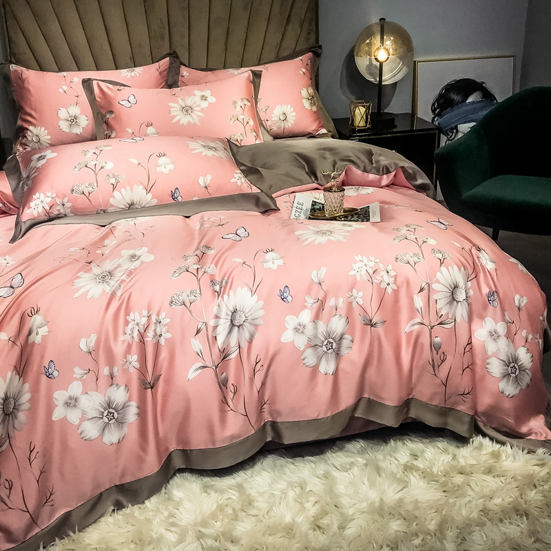 朵美 2021新款60天丝印花四件套 霓裳蝶舞咖