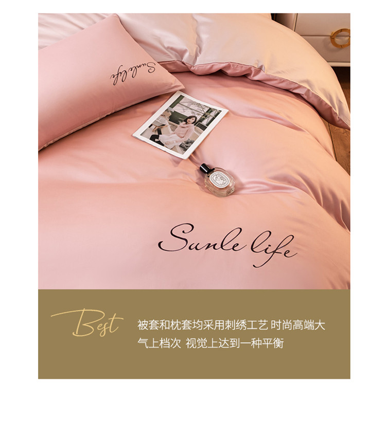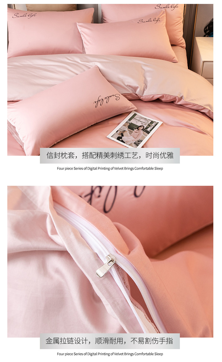 商品名称:古吉梦 2020新款洛卡棉双拼S款四件套 藕粉
