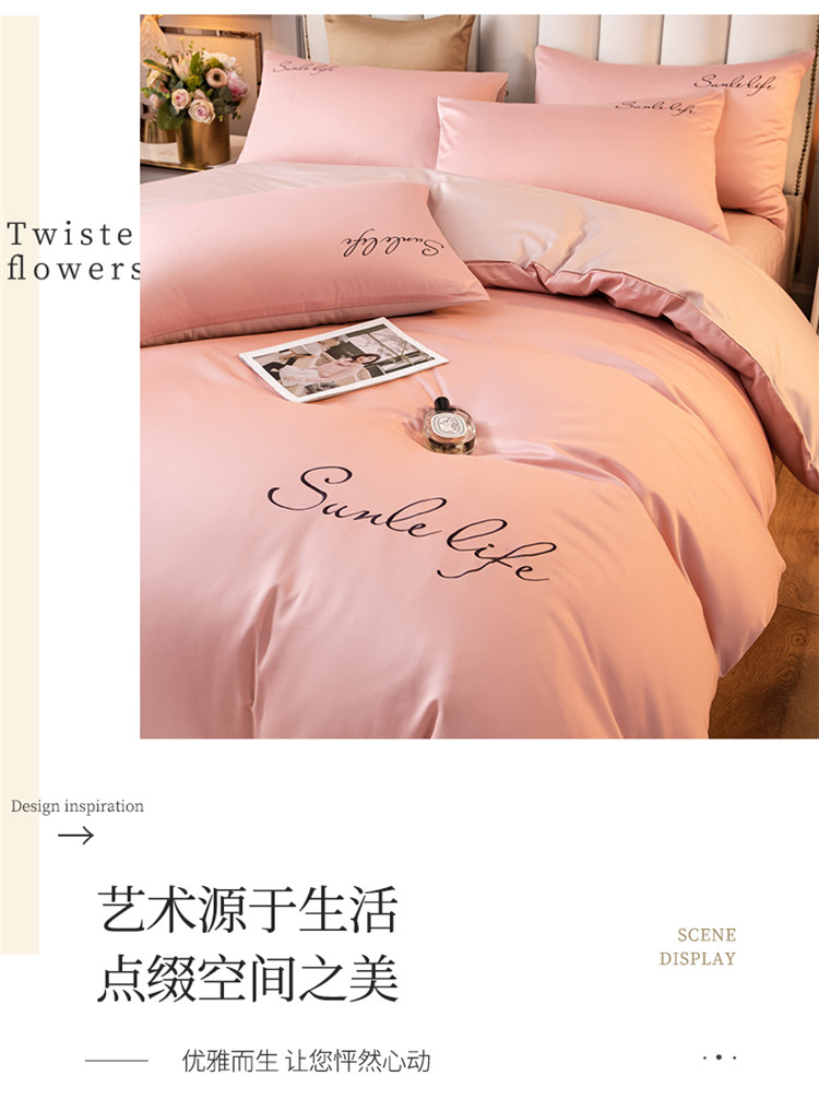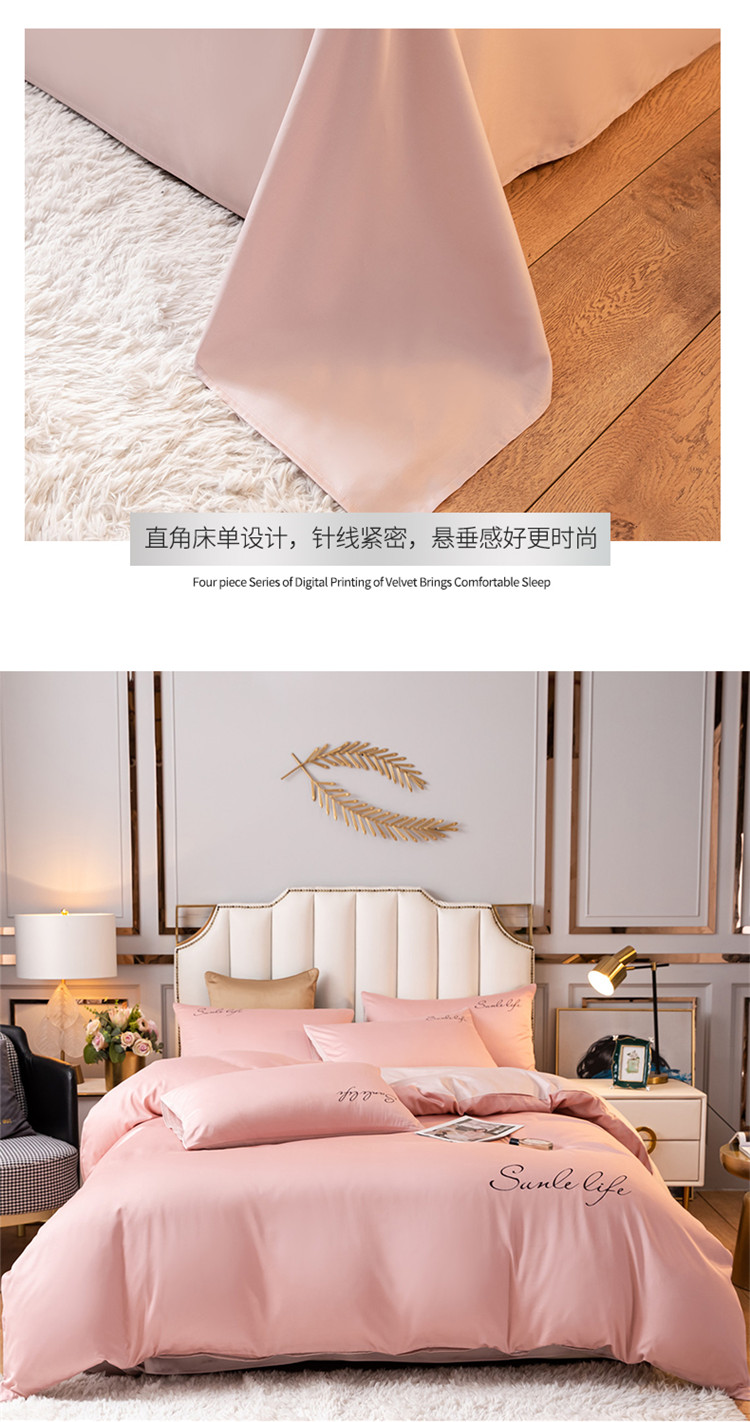 古吉梦 2020新款洛卡棉双拼S款四件套 藕粉