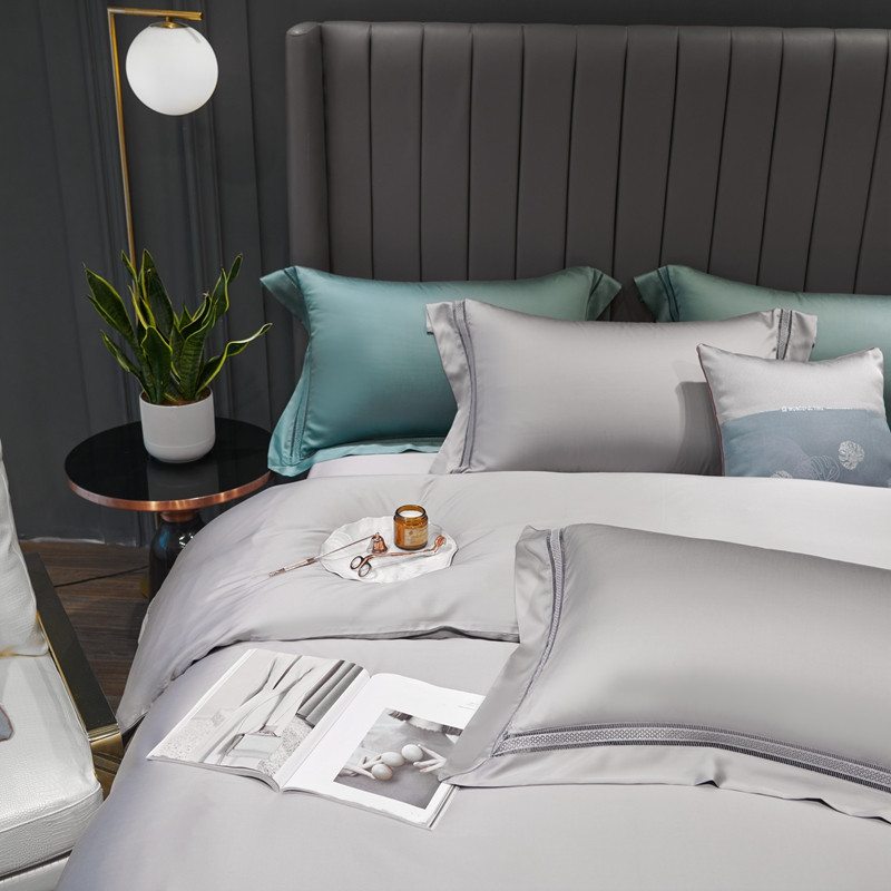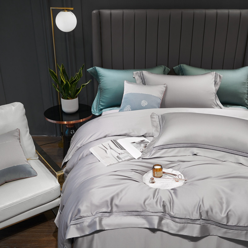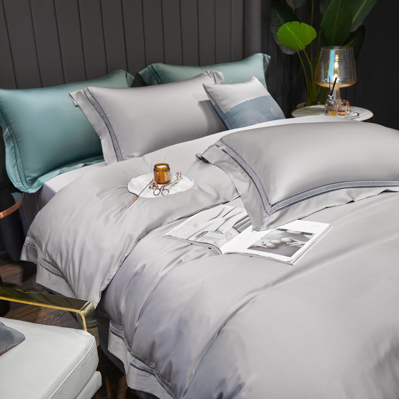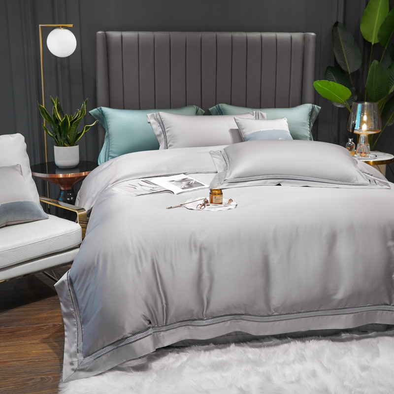 时亿家居 2021新款80天丝瑞丽镂空四件套 瑞丽海盐灰