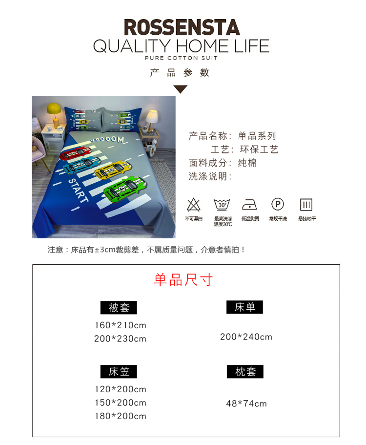 商品名称:金爱家 2021新款全棉大版单品床单 疯狂赛车