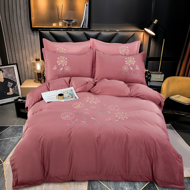 (总)玖玖爱 2023新款100支双股长绒棉刺绣四件套-宝莉系列,宝莉-戴妃黄,宝莉-粉豆沙,宝莉-茗翠蓝,宝莉-西域红,宝莉-紫灰