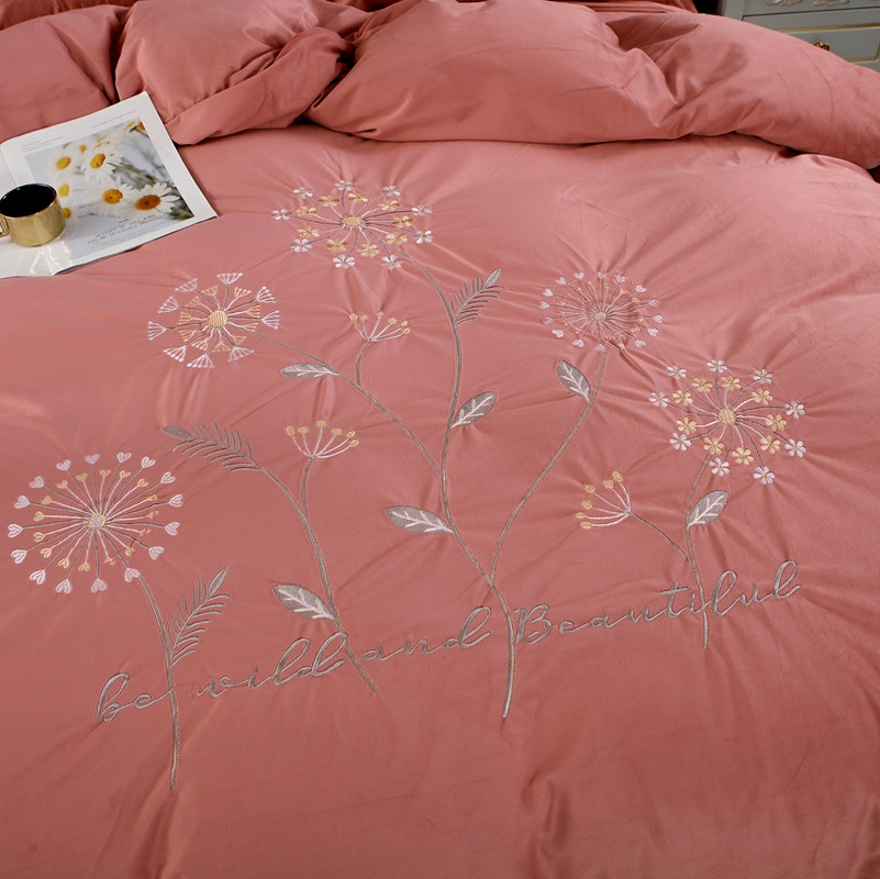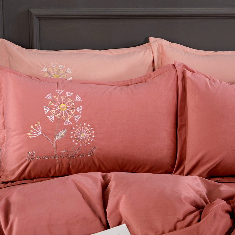 玖玖爱 2021新款婴儿绒四件套蒲公英系列 豆沙